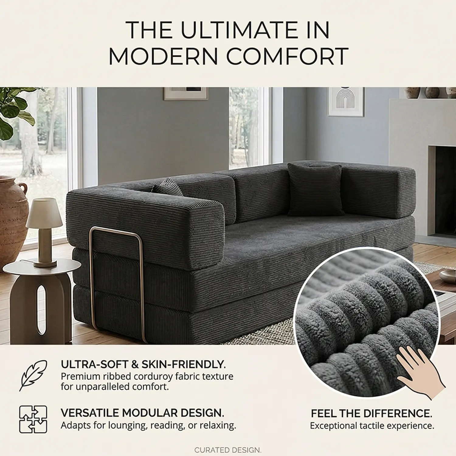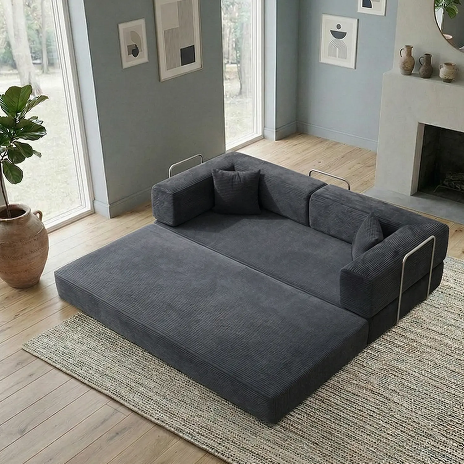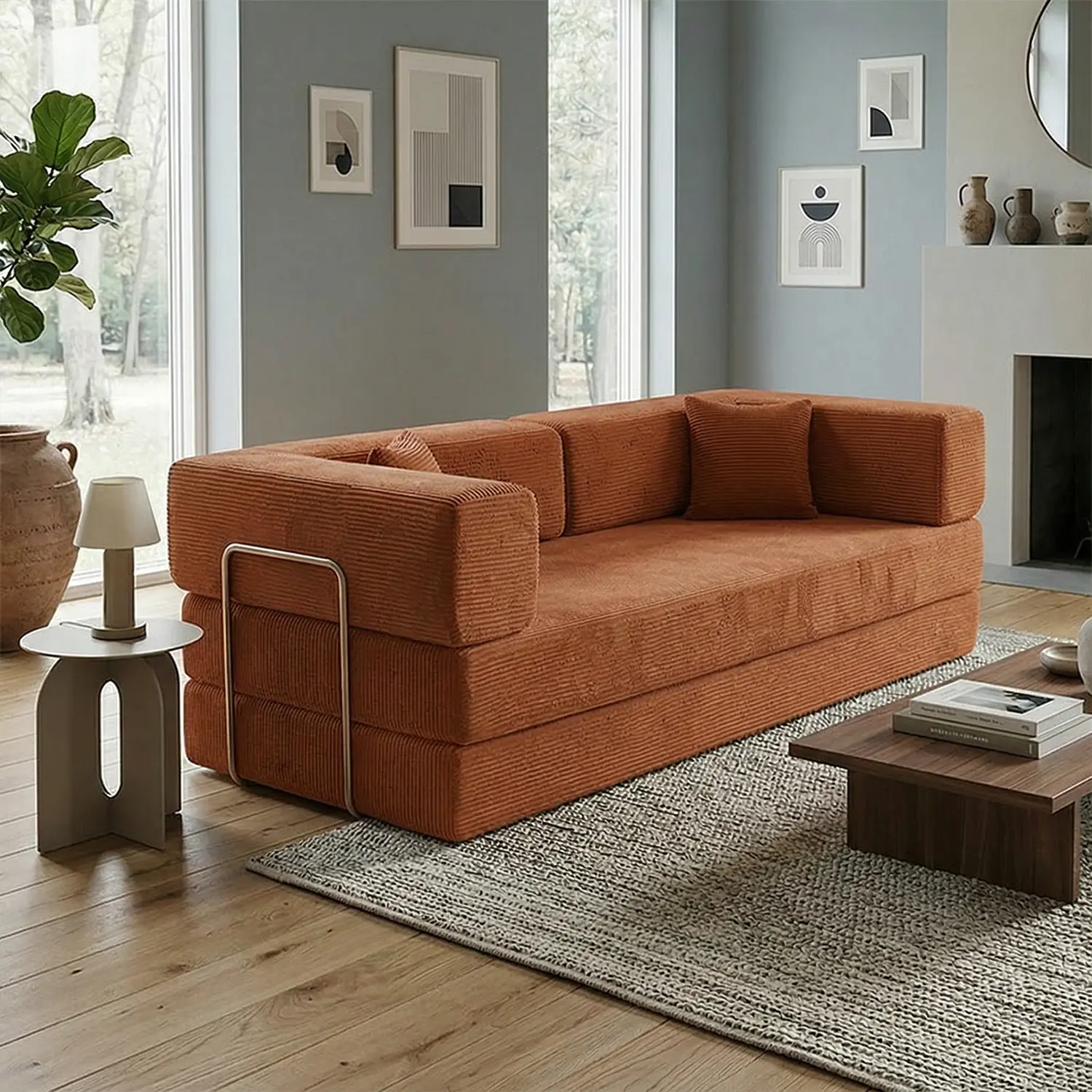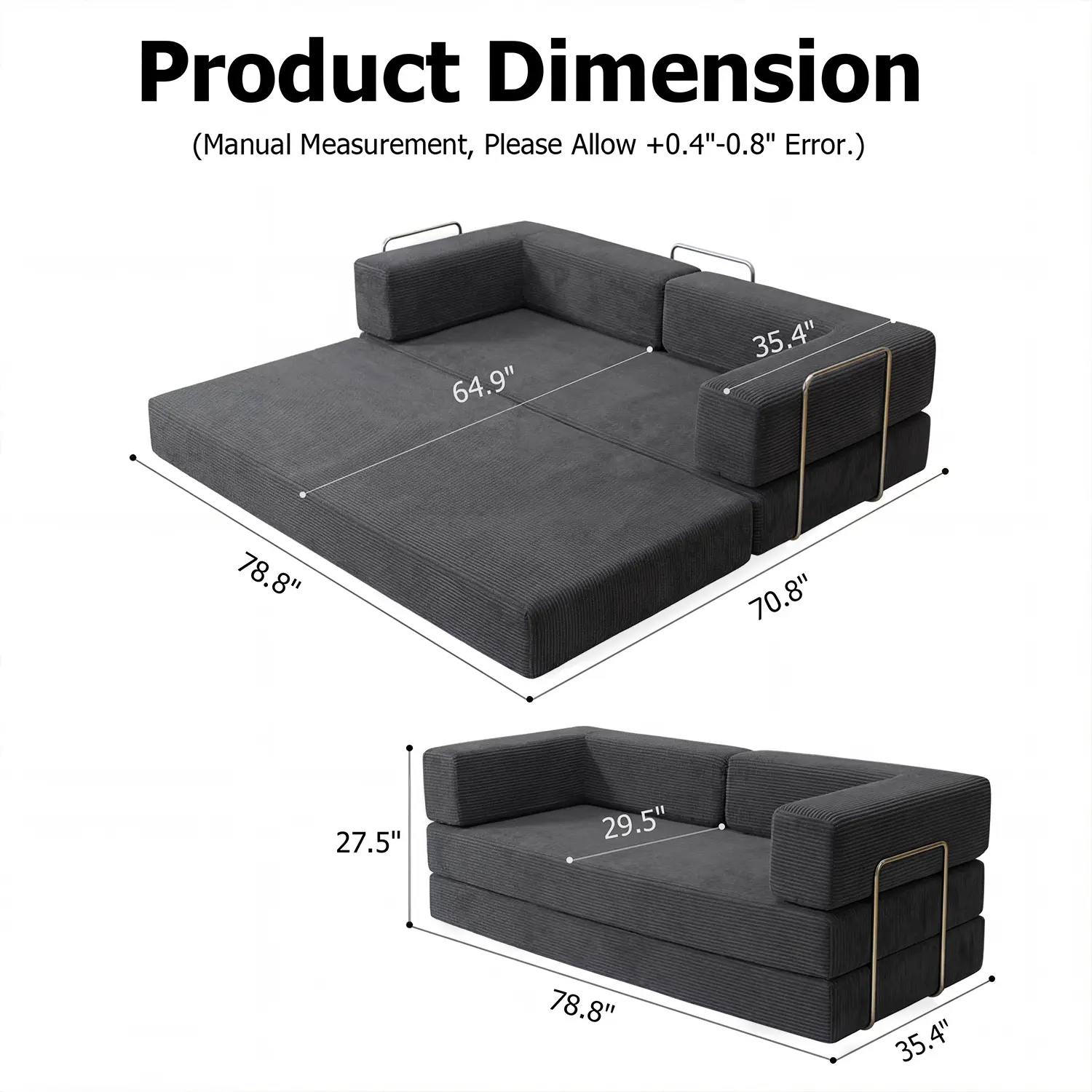 Convertible Sofa Bed with Fixed-Shape Frame & Removable Armrests, Modular Corduroy Sleeper Sofa, Folding Mattress Couch for Small Spaces - No Assembly Needed in Green (Includes 2 Pillows)