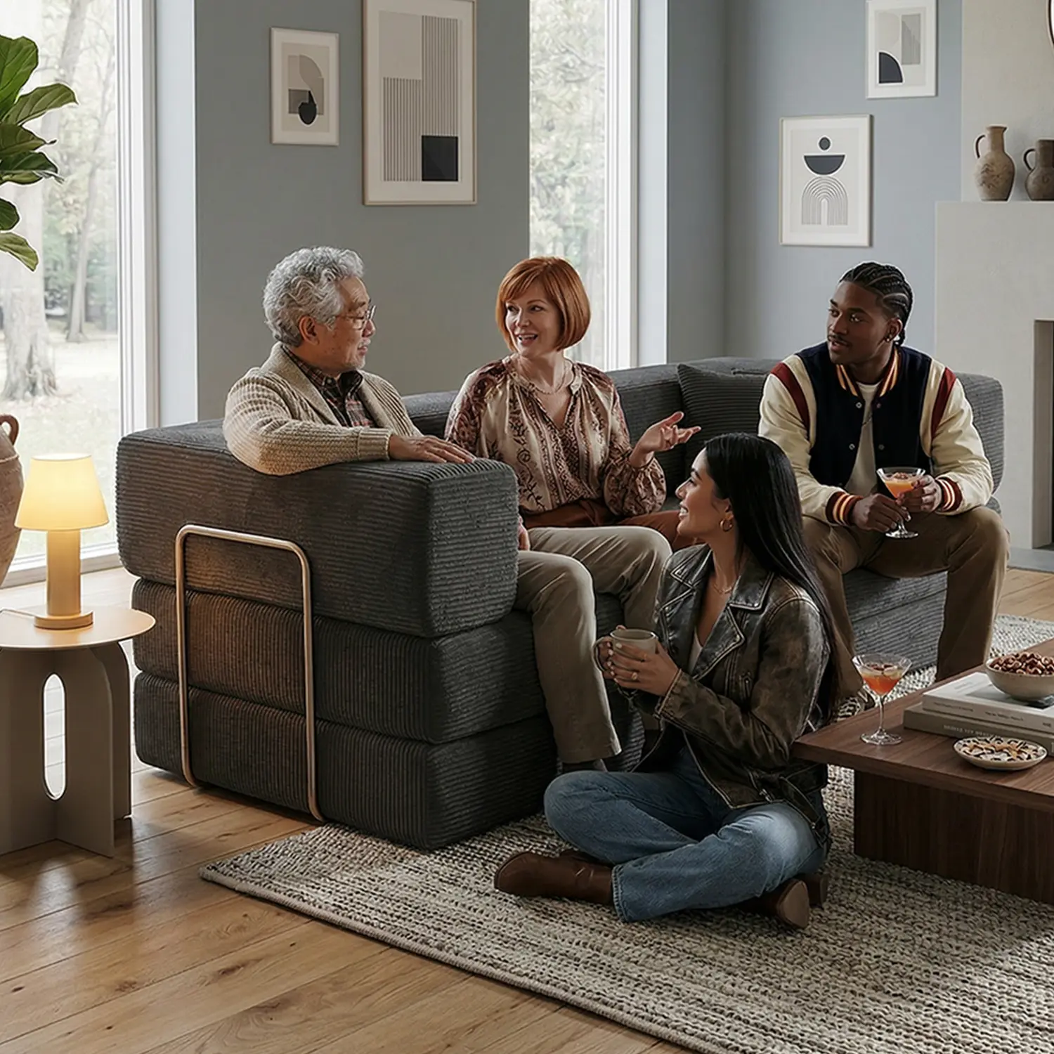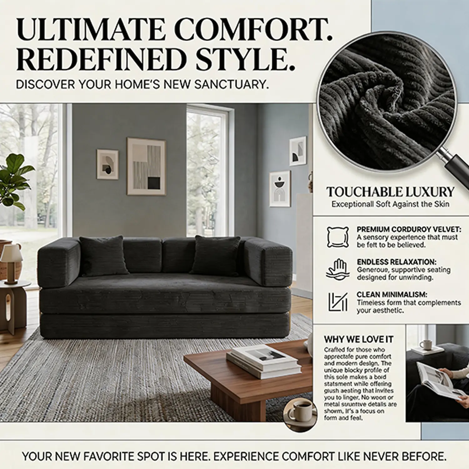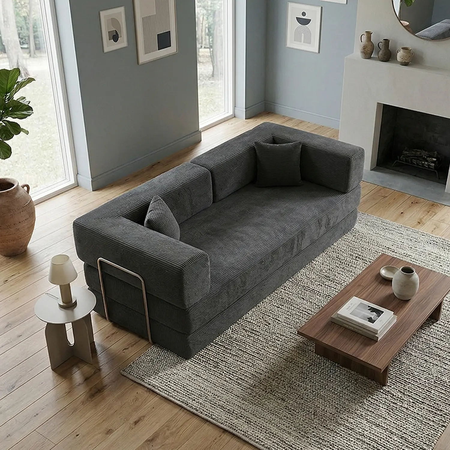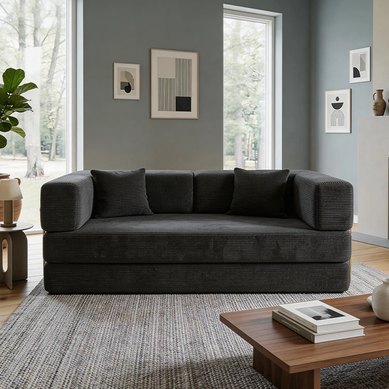 Convertible Sofa Bed with Fixed-Shape Frame & Removable Armrests, Modular Corduroy Sleeper Sofa, Folding Mattress Couch for Small Spaces - No Assembly Needed in Green (Includes 2 Pillows)