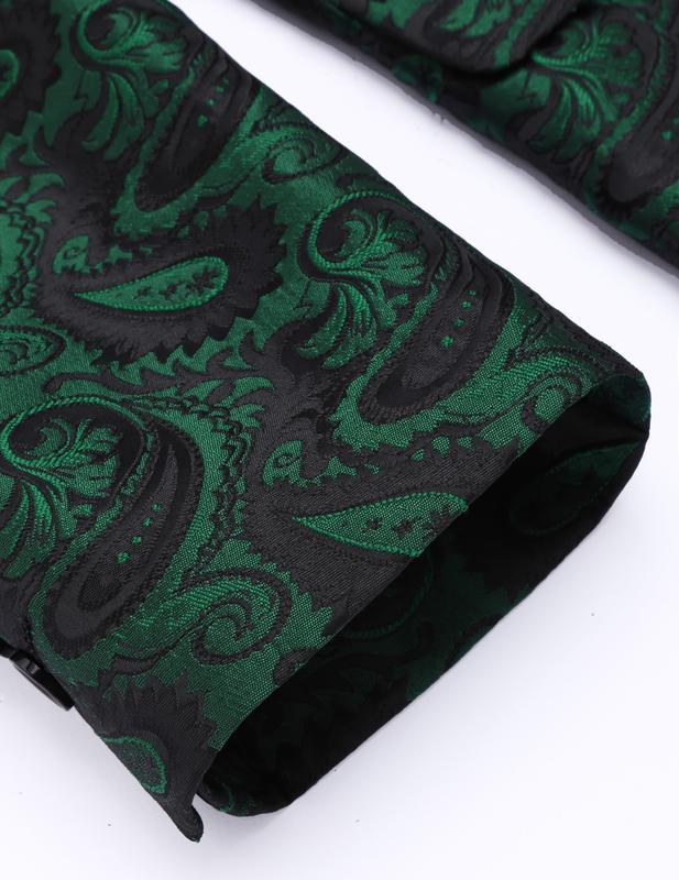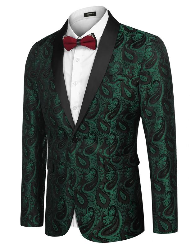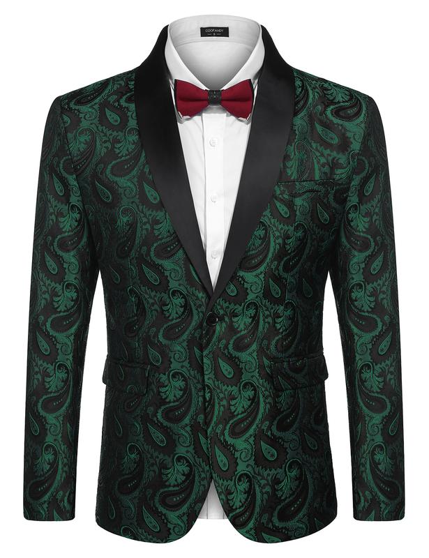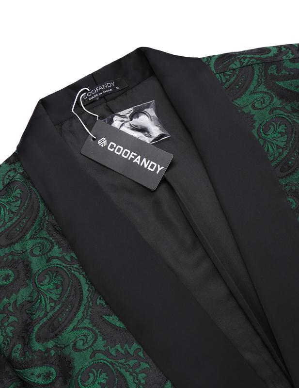 ·The single-breasted blazer is feature with regular fit, shawl collar, one button closure, one front pocket,two side flap pockets and two inside pockets, allover classy paisley embroidered pattern makes it a head turner.