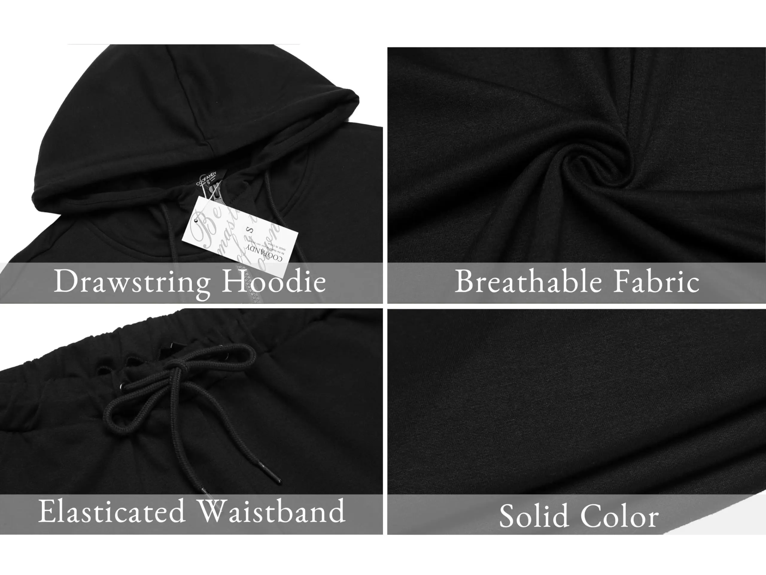 ·Full Zip Hoodie&Jogging Sweatpants: Long sleeve jacket with adjustable hood and full-zip closure. Long jogging pants have Elastic waist with drawstring.Both jacket and lounge pant has 2 slant pocket can storage some small items safely while exercising.