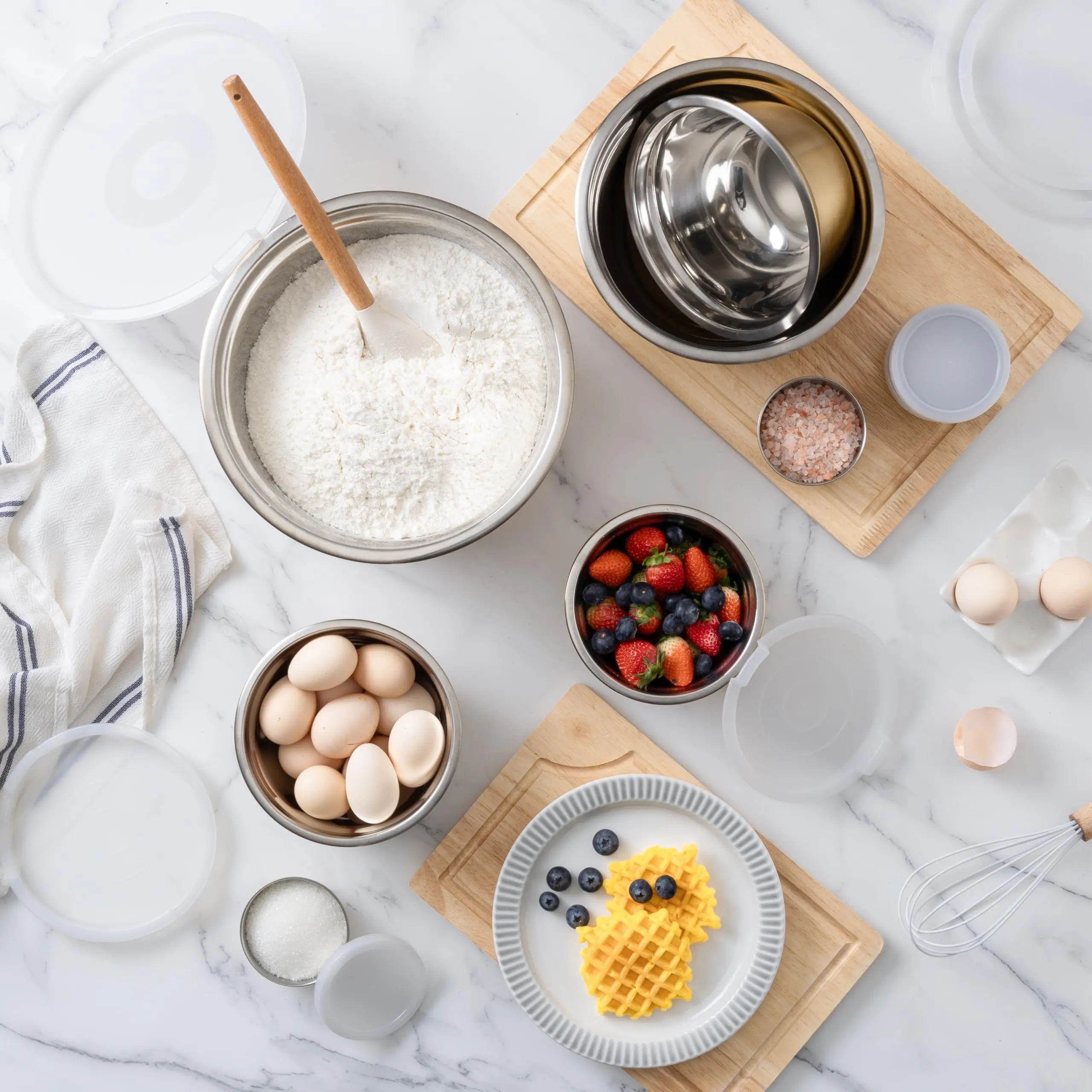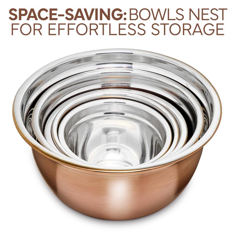 ·Nesting Design – These mixing bowls and lids nest perfectly inside one another to save valuable cabinet space. Keep your kitchen tidy and clutter-free with a compact, stackable design that makes storage simple, sleek, and effortlessly organized.