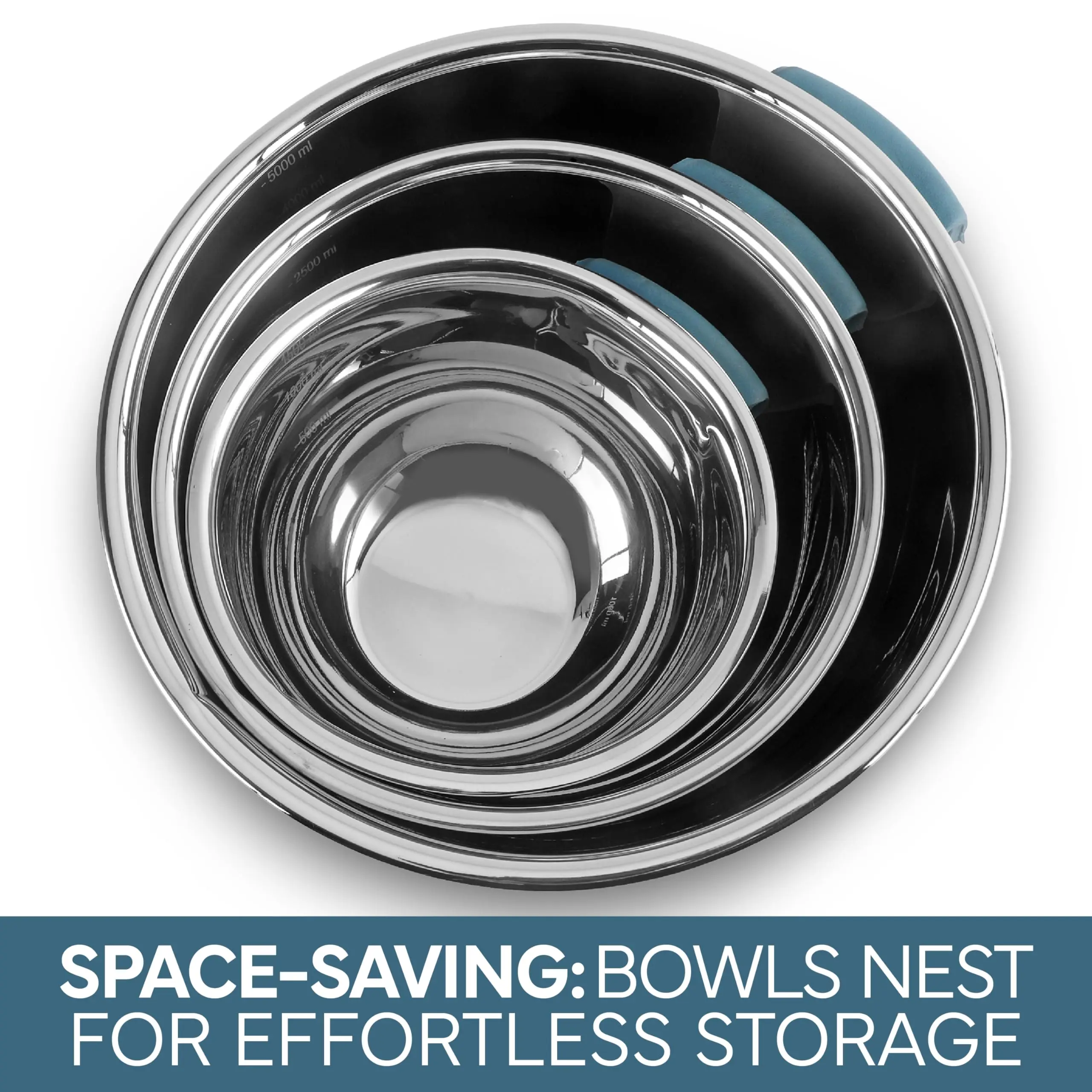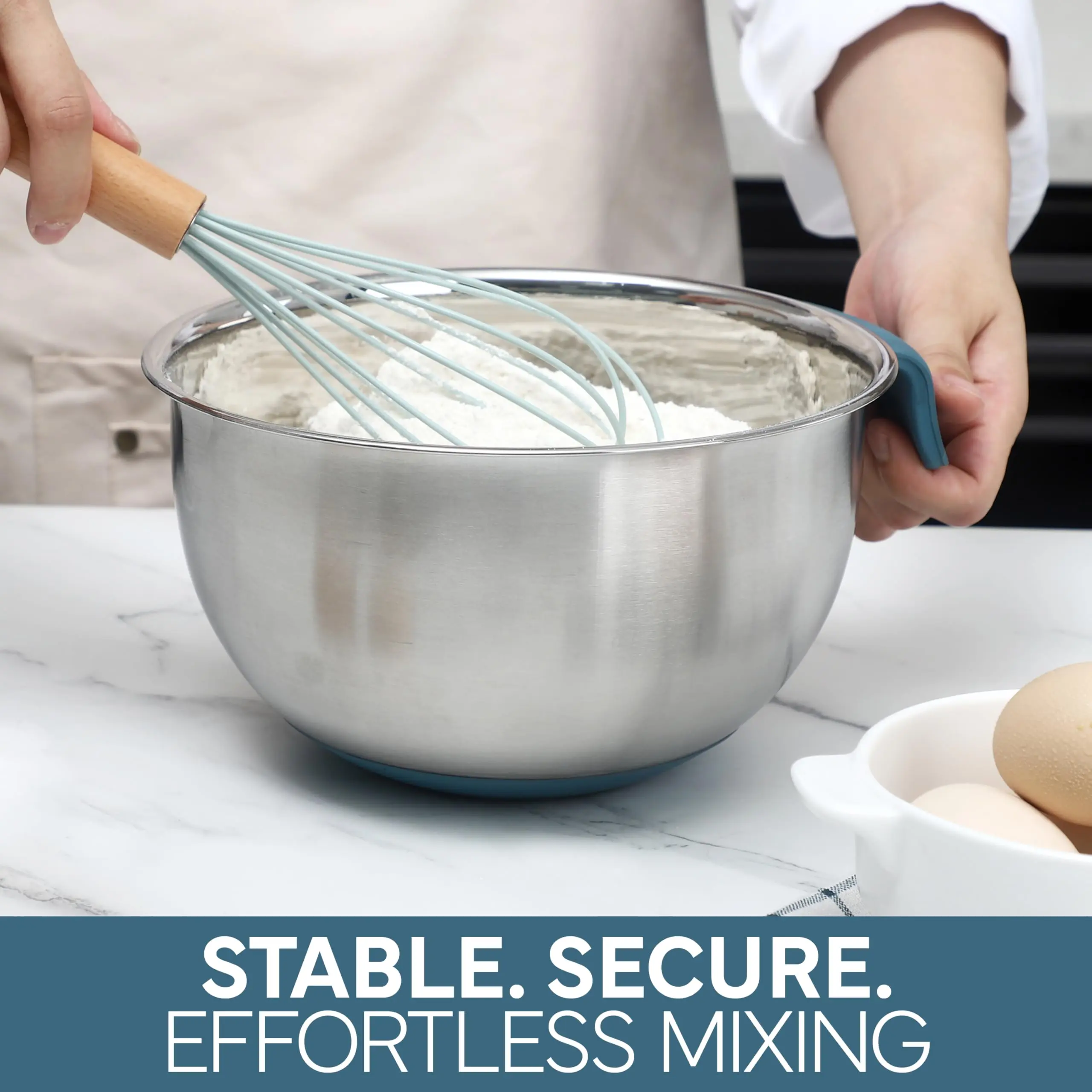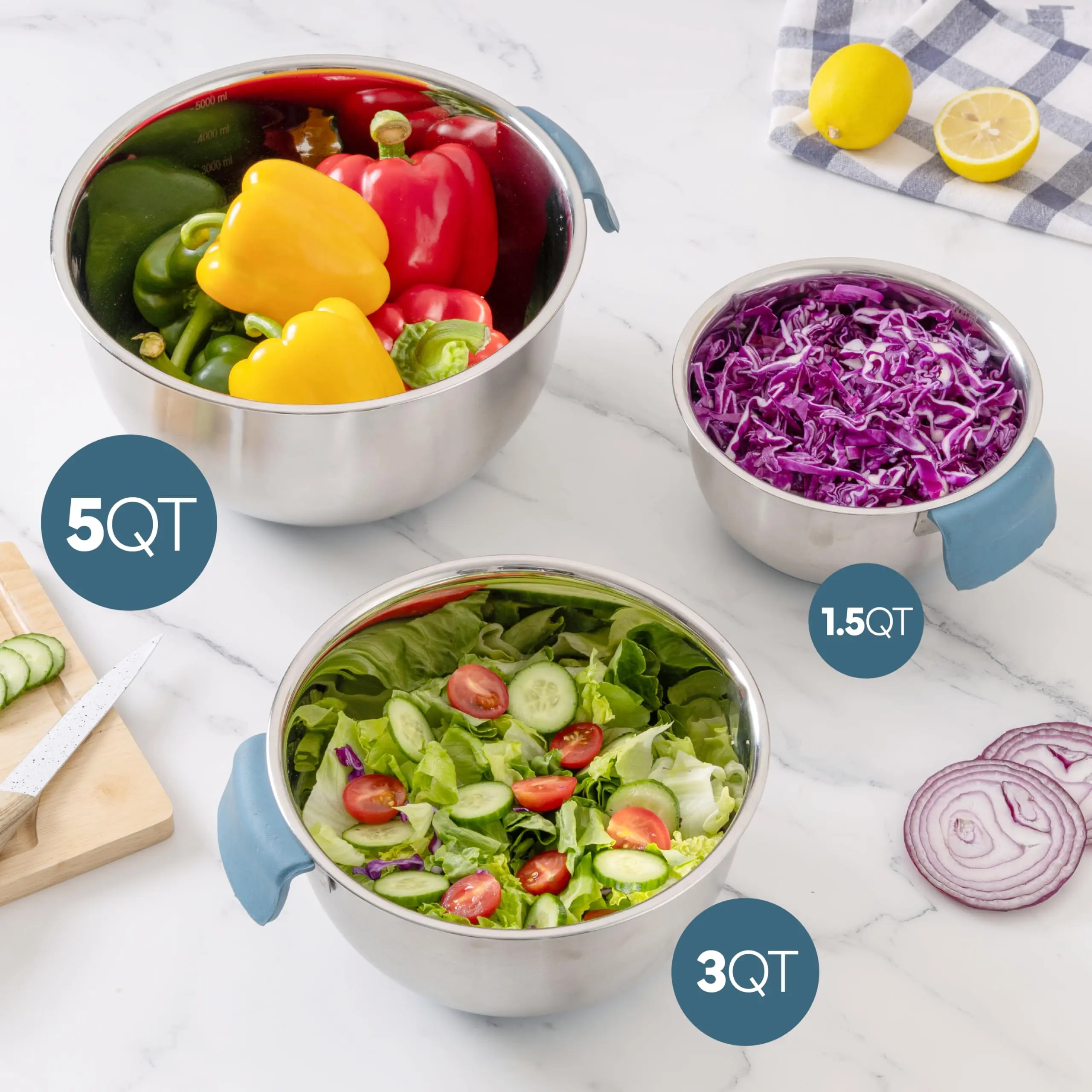 ·Non-Slip Bottoms: Each bowl in this set is equipped with a non-slip base, ensuring stability and preventing accidental spills or slips during mixing or food preparation.