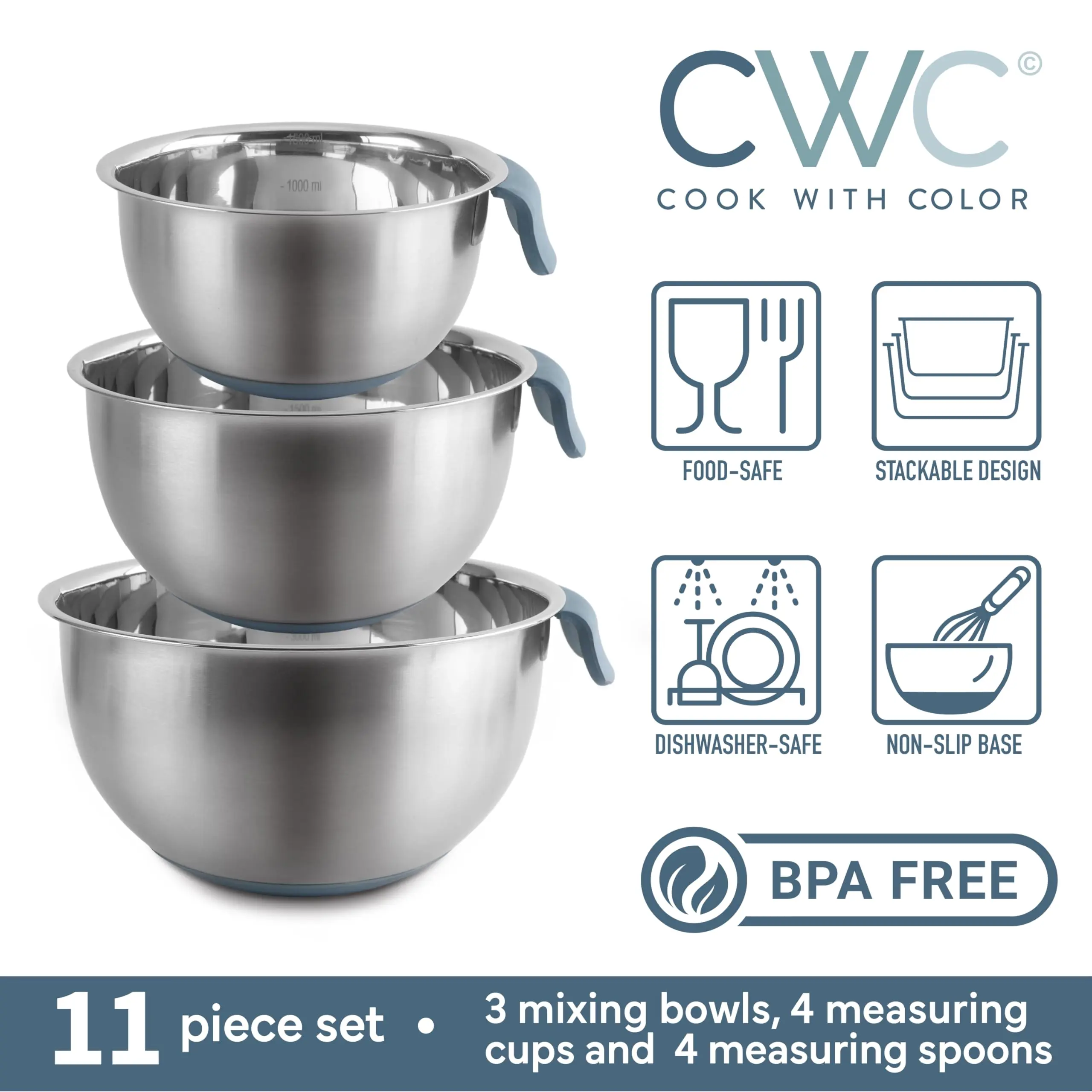 ·Durable Stainless Steel: Crafted from high-quality 18/10 stainless steel, these bowls are not only resistant to corrosion but also offer durability that stands the test of time. Elevate your kitchen experience with a set that combines practical features with lasting quality.