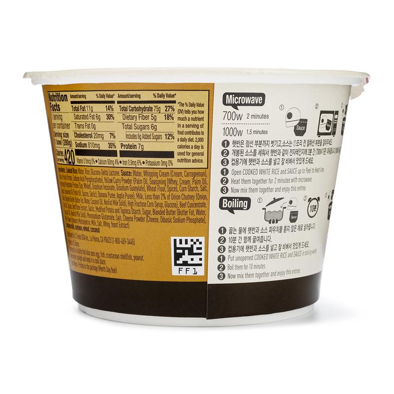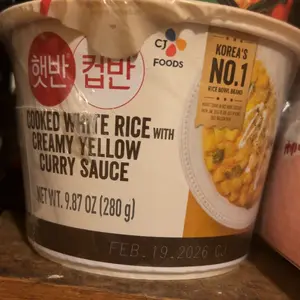 Ohhh man so good!! Creamy and golden curry! Small amounts of chick peas and I think potato pieces. I usually add green onion and some sliced meat if I have it.