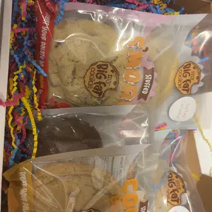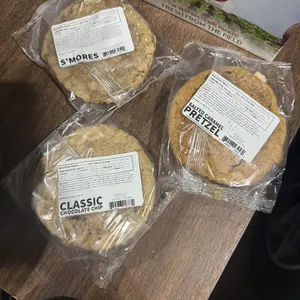 Did not enjoy these cookies at all they were overly sweet, the pretzel on the salted caramel pretzel cookie was stale cookies were not worth the price at all, i atleast thought i would get my cookies in the same packaging as everyone on tik tok nope i guess that was for pr, try my big fat cookie yum