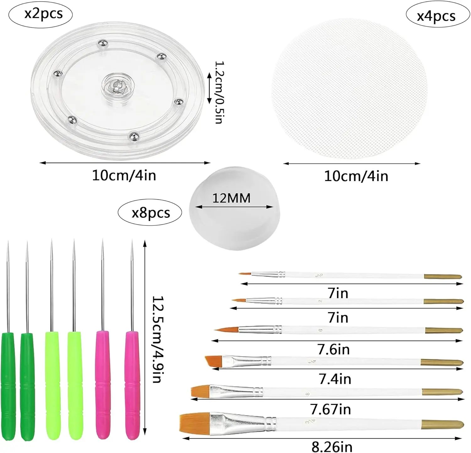 Size: biscuit turntable size 4inch thickness 1.2cmThe cookie decorating brush is 6.3-7.28 inches and the stirring scribing pin is 4.9 inches in length the perfect size the diameter of the non-slip net is 4inch cm for your DIY cookie decorating