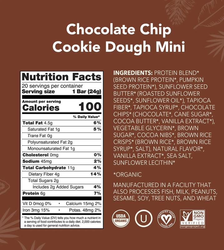 The Chocolate Chip Cookie Dough Minis are the perfect little snack. They are soft and chewy with the perfect amount of sweetness. Anytime I feel myself getting hungry between meals I reach for one of these bars. They are the perfect healthy snack and satisfy my hunger every time!