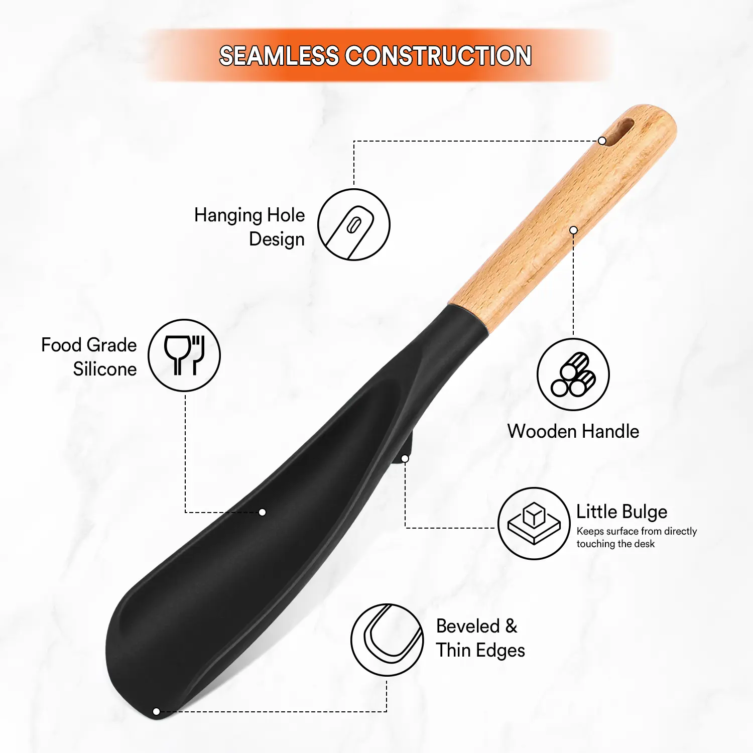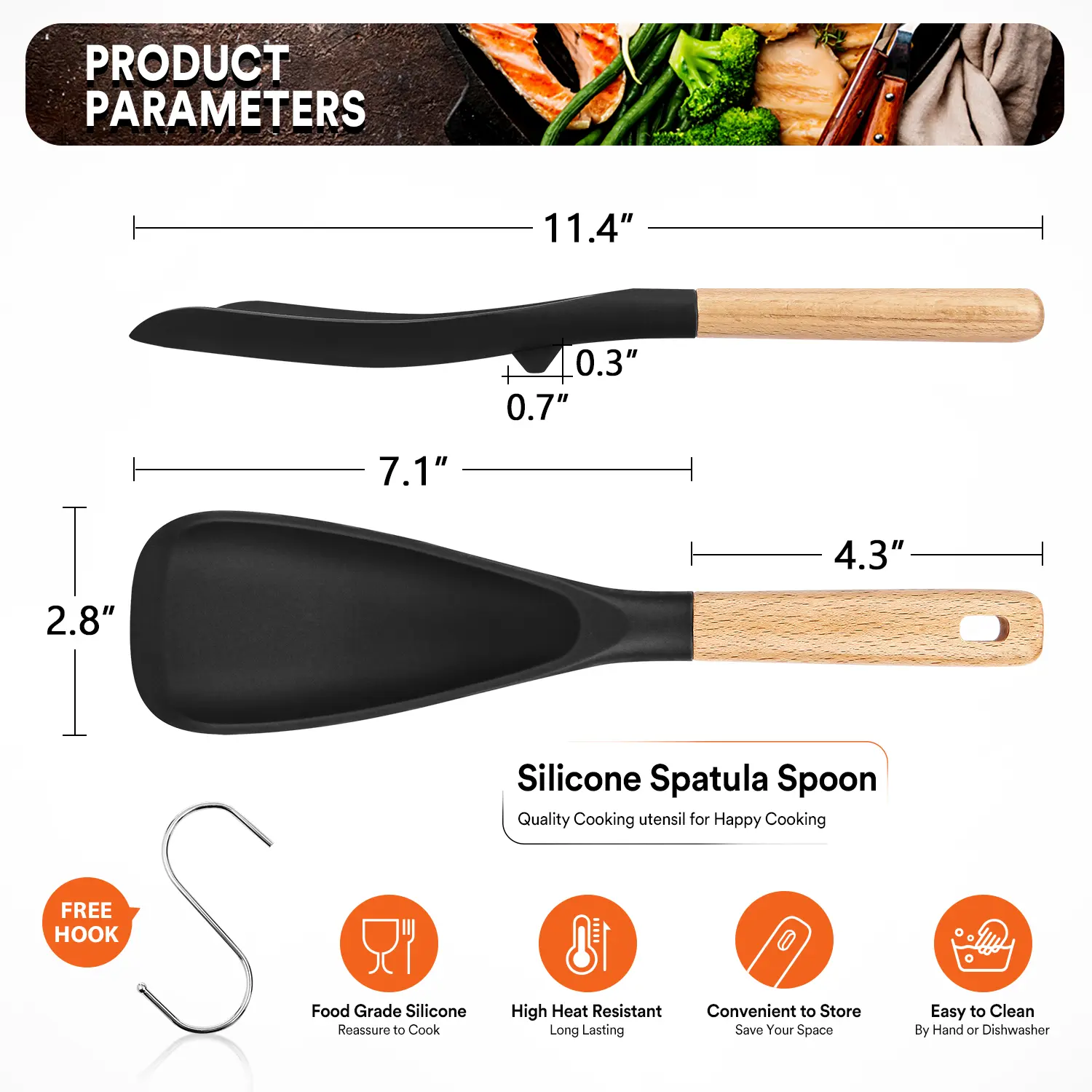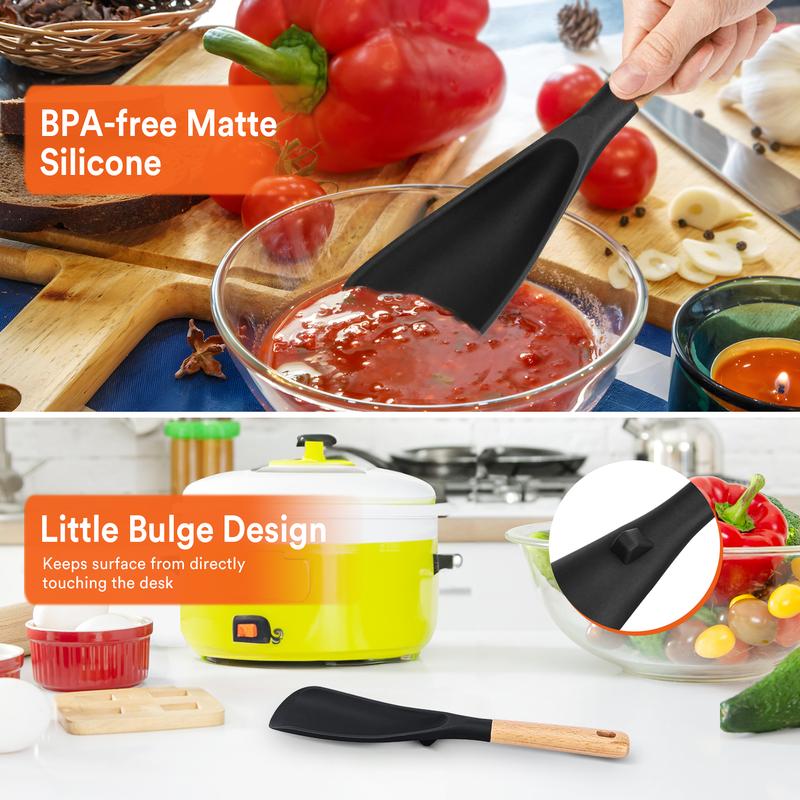 My new favorite kitchen tool, I'll be buying more. The color & durability it amazing. Everything is non-stick even when working with sugary syrups. The little designed stand on bottom keeps the tool off the counter..... ..Thank you for your great spatula/spoon <3