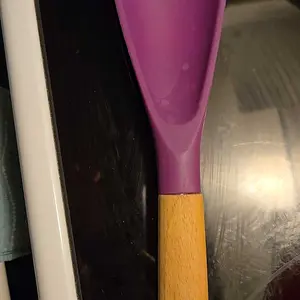 This is one of my favorite kitchen utensils! It’s made well, I love the wooden handle & the silicone bottom is soft but sturdy enough to mix even the largest batches of food! Loved so much I ordered another to give my mom.