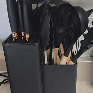 Products include: 1 x egg spatula, 1 x slotted egg spatula,1spoon,1 colander,1 spoon, 1 spatula,1 x pasta spoon,1 xchopsticks,1 round spatula, 1 egg beater, 1 x grease brush1 x clamp, 1 chef knife, 1 slicing knife, 1 bread knife, 1 multipurpose knife, 1 paring knife, 1 storage box, 1 cutting board