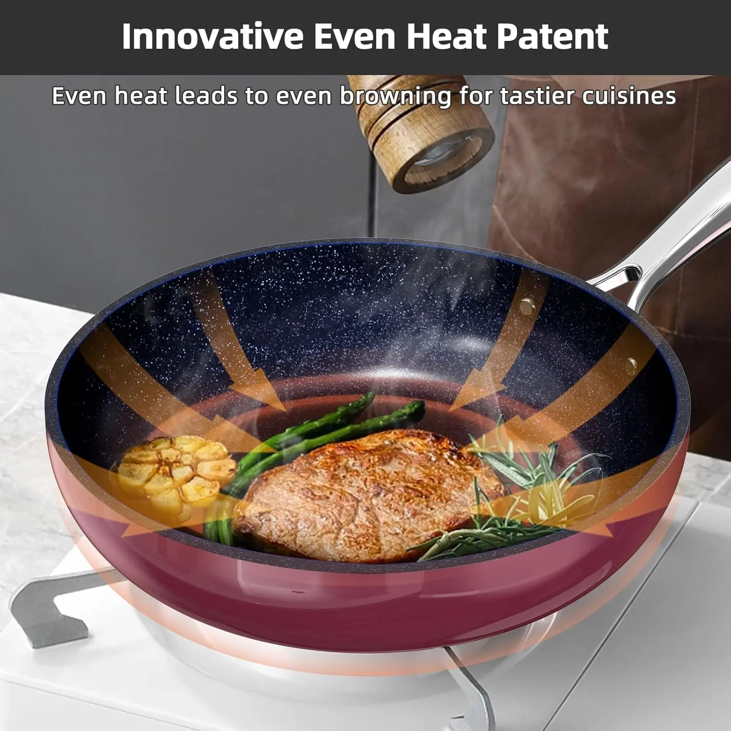 So far having a great experience with my new cookware. Non-stick with even heating! Really excited for continued use.