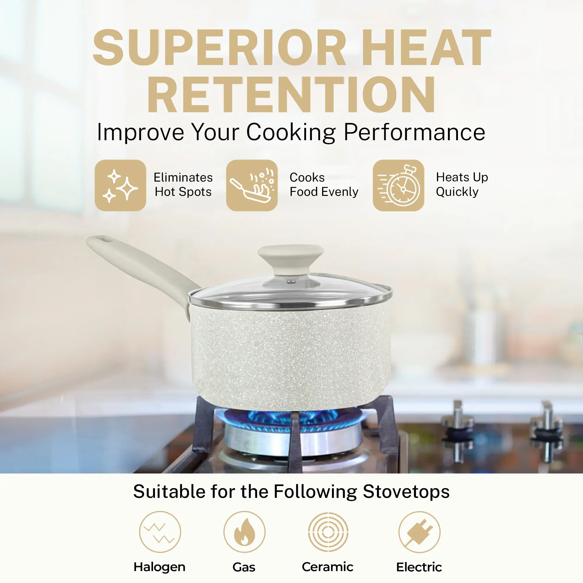 ·Oven safe: compatible with gas, electric, glass cooktops and oven safe up to a sizzling up to 350°F (cookware pieces)