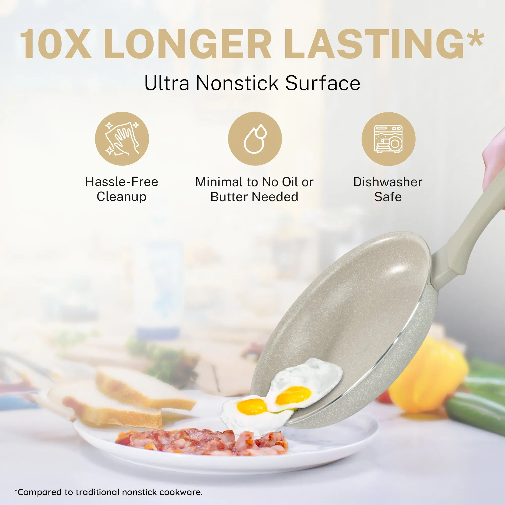 Desert collection by Granitestone is everything a kitchen needs to start cooking healthier. This all-inclusive cookware and bakeware set is crafted with 3-layer nonstick coating for easy to clean, so food won't stick to the surface.