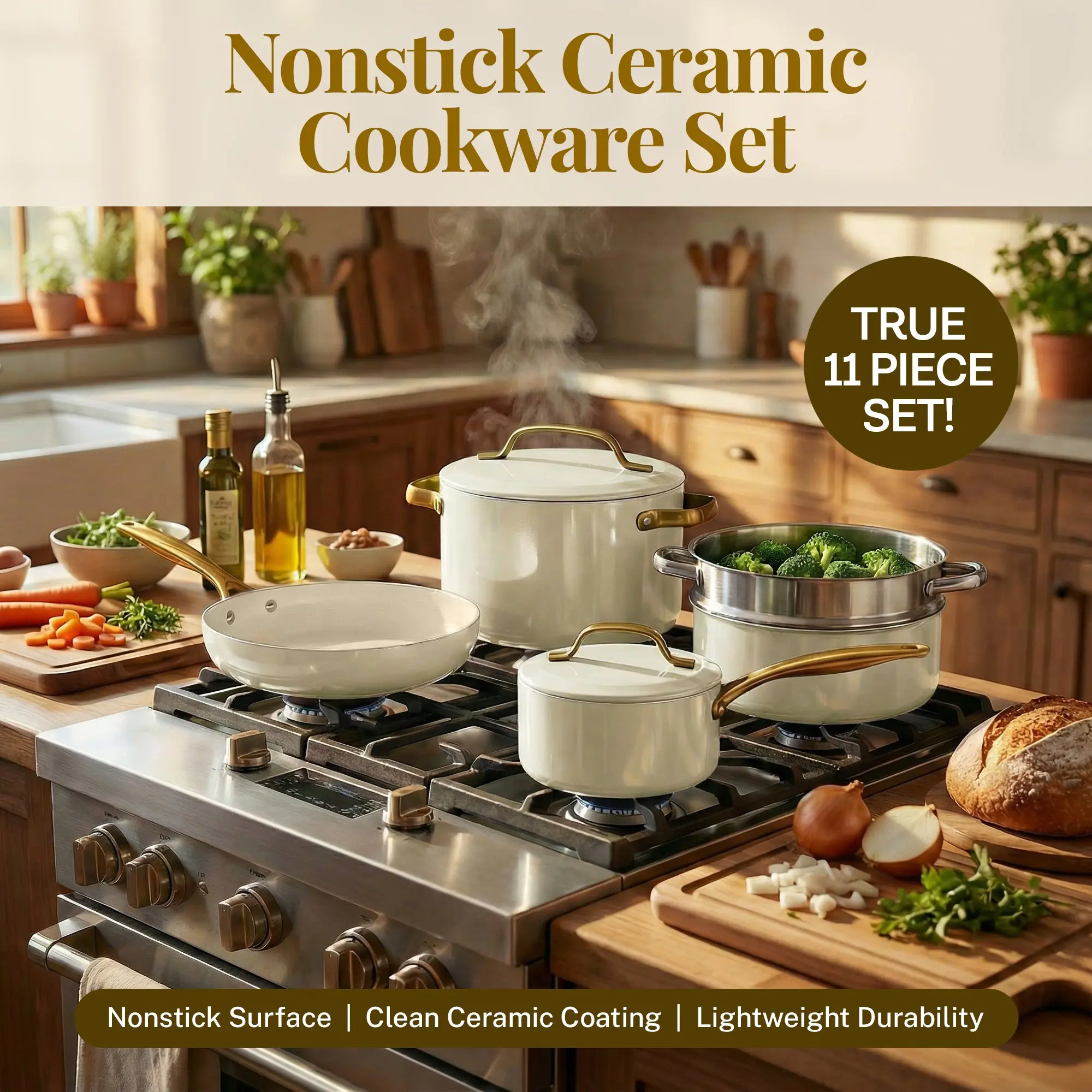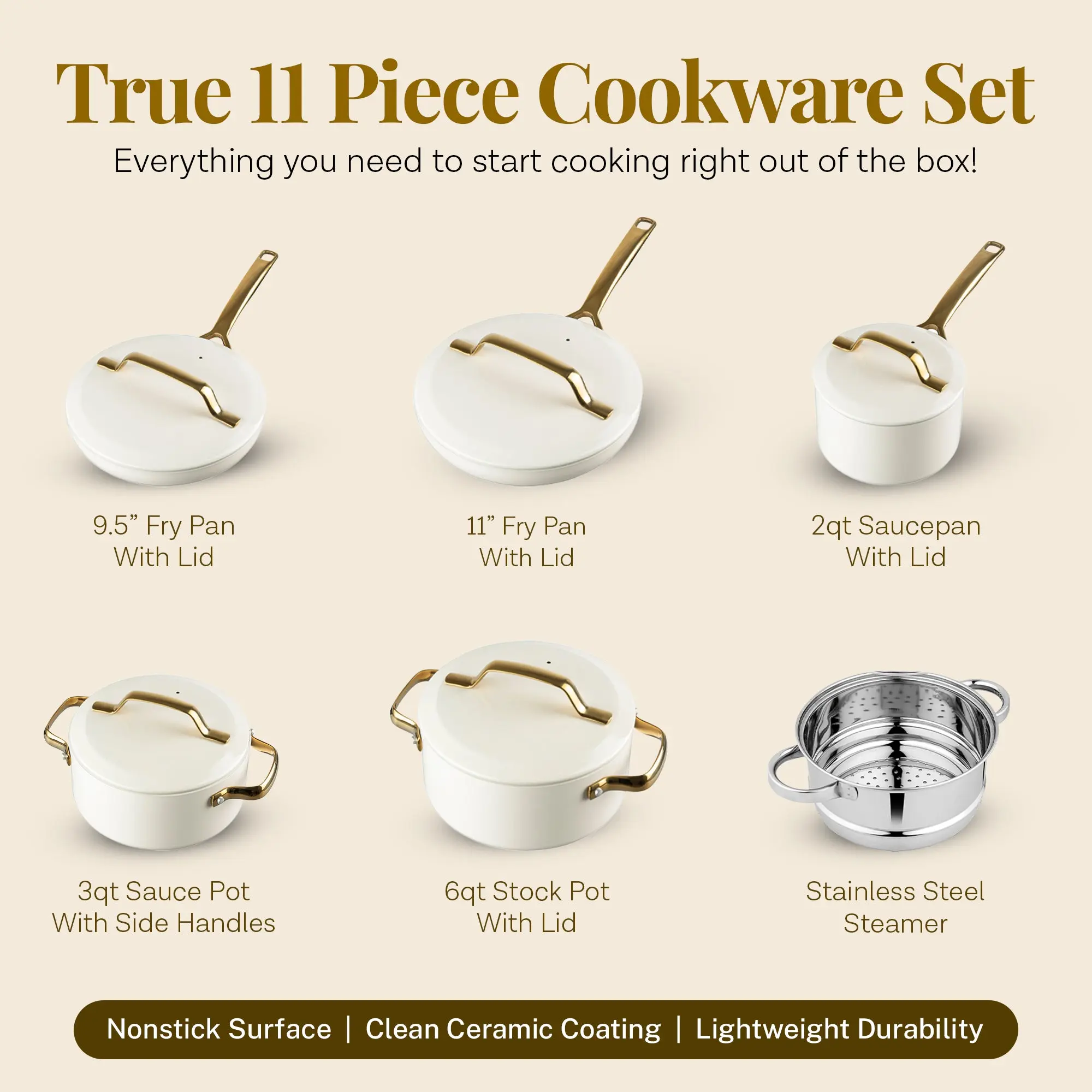 GOTHAM STEEL MODERN COLLECTION 11 PIECE SET: Cook up your favorite meals on a collection that looks as good as it cooks. A nonstick ceramic surface is healthier, with little need for oil or better and made without harmful chemicals.