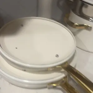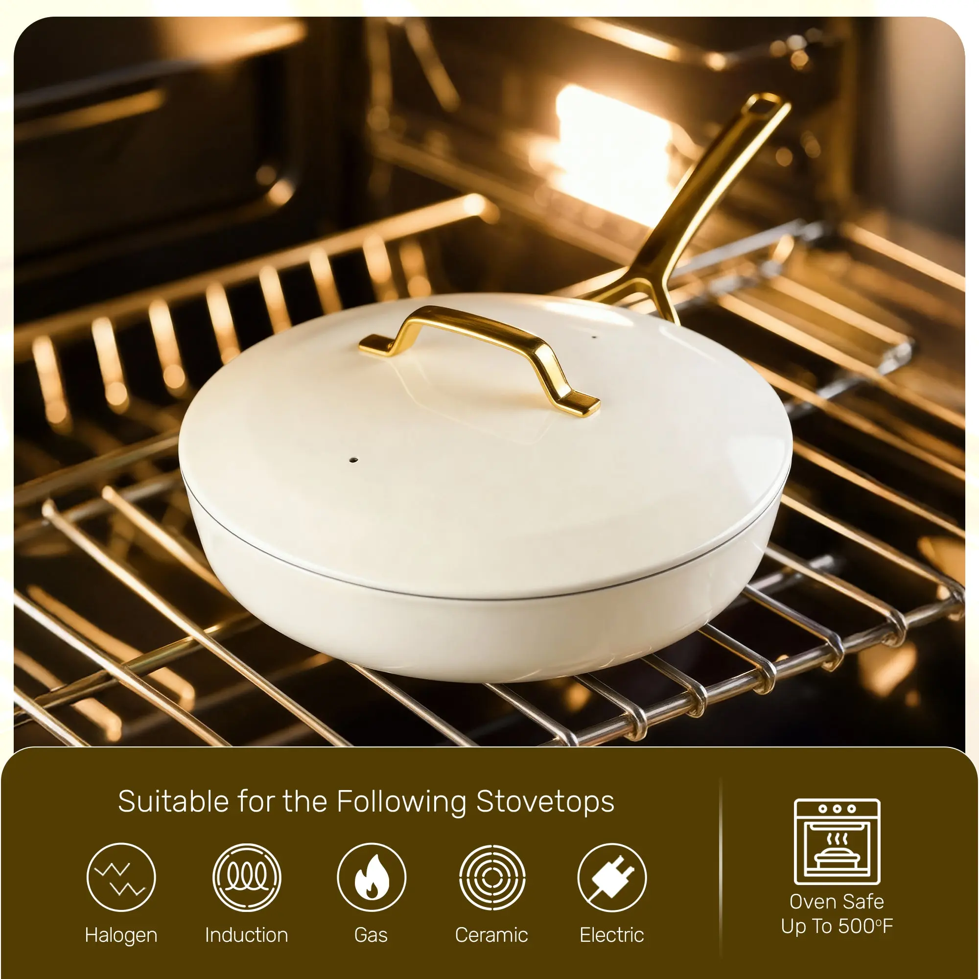 ·STAY-COOL HANDLES: Ergonomic gold metal handles are easy to grasp and stay cool to the touch.