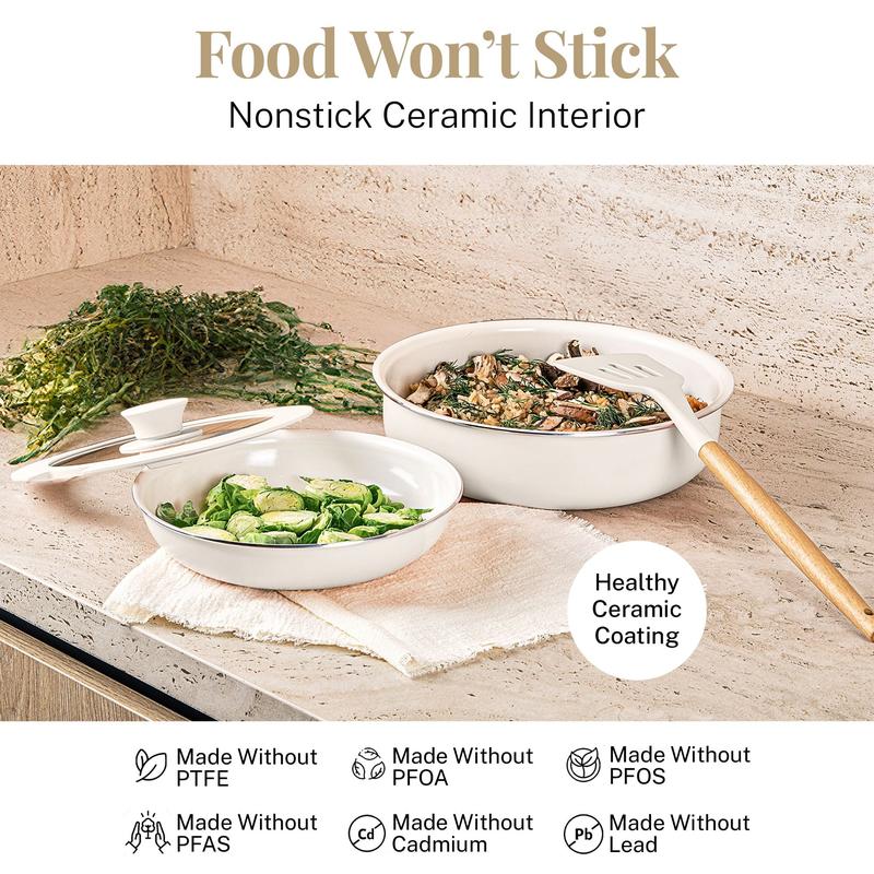 ·Elegant and Efficient Design: The cookware's cream finish not only looks great but also complements your kitchen decor. Its lightweight yet sturdy construction makes it easy to handle, ideal for everyday use.