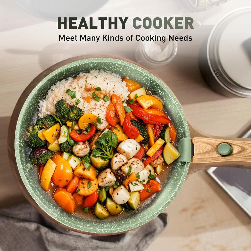 ·Nonstick and Easy to Clean: Our cookware set is coated by high-performance non-stick granite coating, which makes the skillet easy to cook and clean. This means less oil or butter used in healthy eating cooking and easier cooking