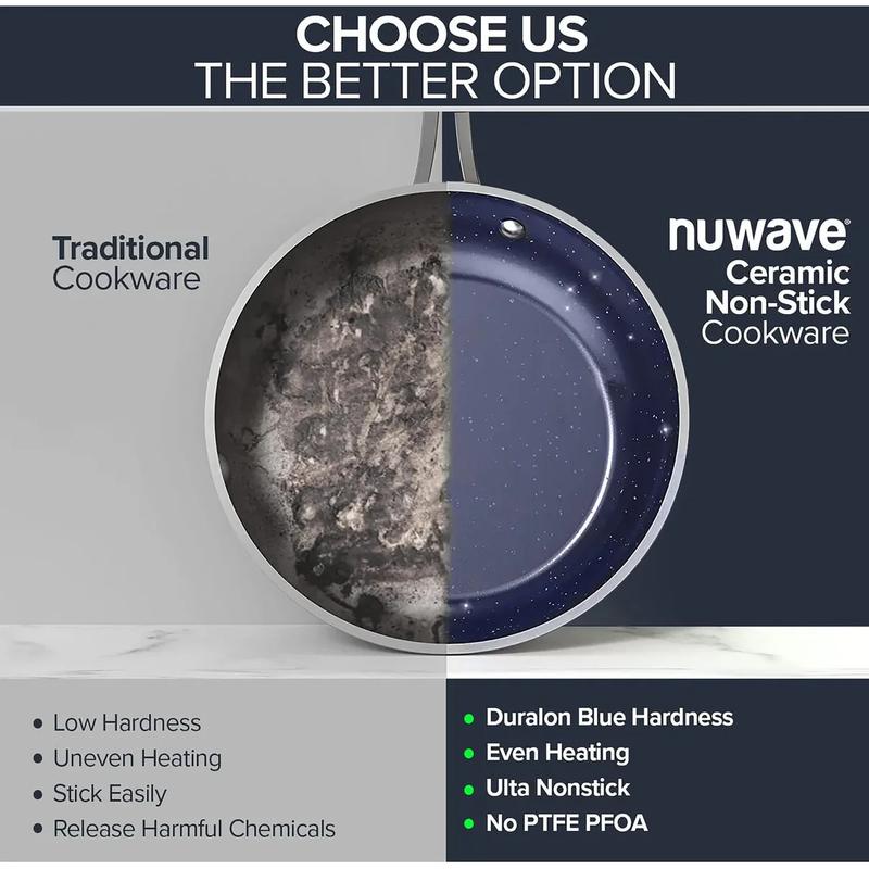 Bought Nuwave cookware to use on my new induction cooktop. Love the cookware. It heats evenly and food doesn't stick. Sizes of pans are just right!