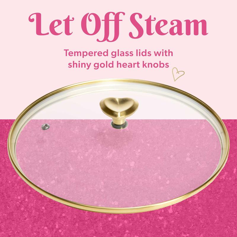 Add a pop of personality to your kitchen with the Paris Hilton Clean Ceramic™ Nonstick Cookware Set. This 10-piece collection blends eye-catching design with everyday functionality, featuring signature heart-shaped lid knobs and a soft pink finish that's trending across TikTok kitchen setups.