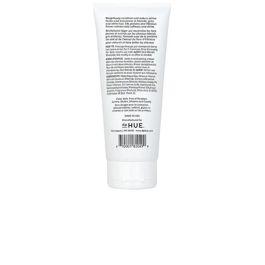 ·dpHUE Cool Blonde Conditioner weightlessly conditions and uses specially formulated violet pigments to neutralize unwanted yellow and brassy tones, leaving blonde hair color looking fresh between salon visits