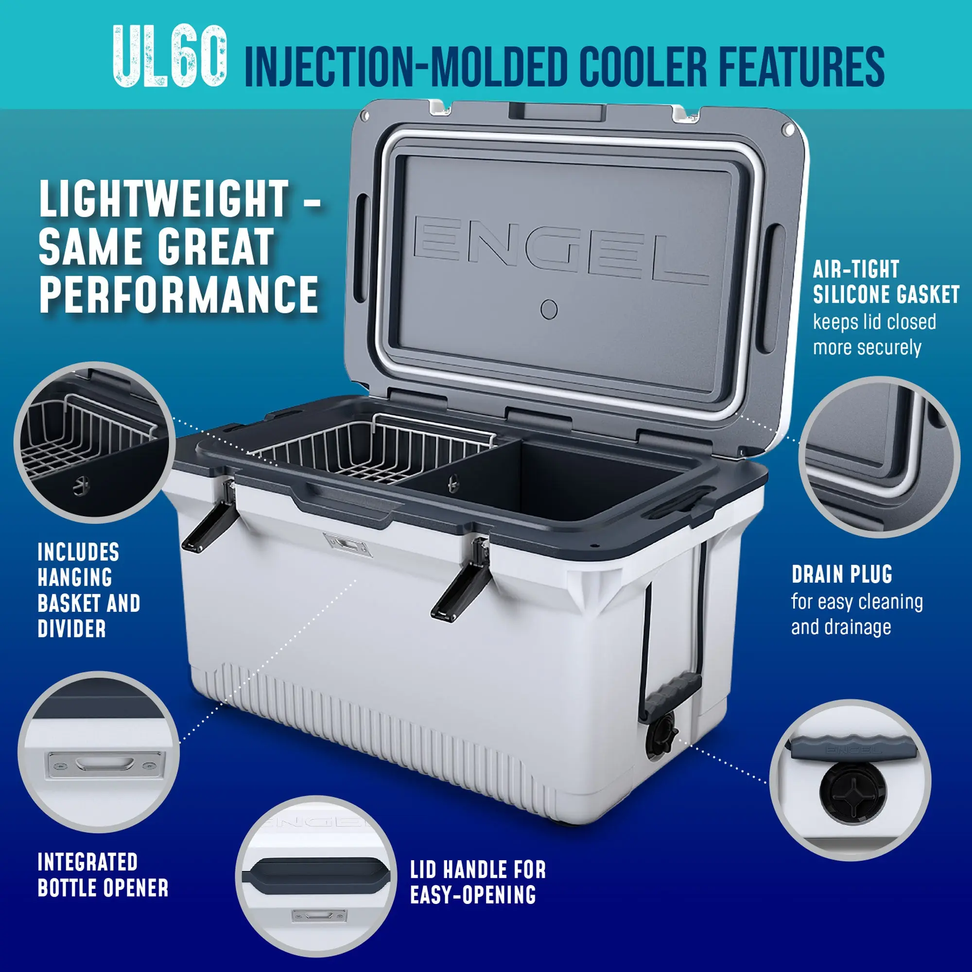 Discover the Engel UL60 Ultralite, a revolutionary high-performance 60-quart cooler designed for camping, fishing, hunting, and road trips. This advanced injection molding cooler features unmatched durability and crack resistance, ensuring it can withstand the rigors of outdoor activities.