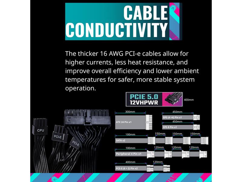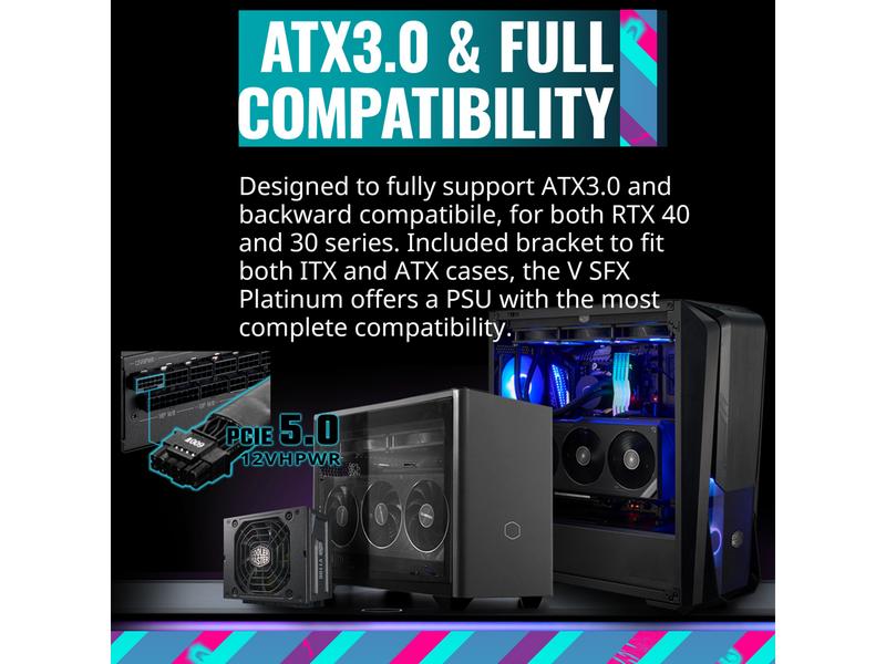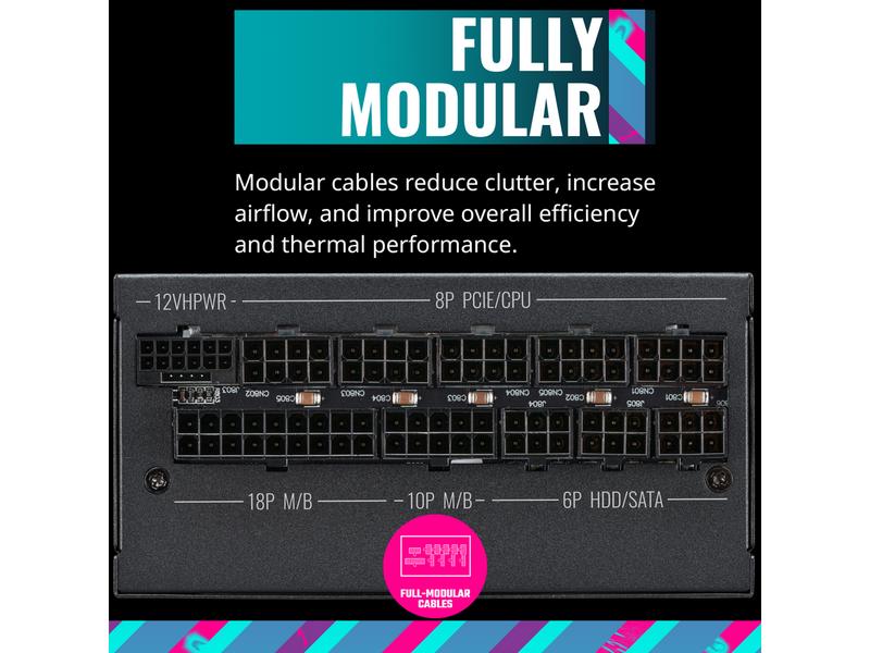 The V850 SFX Gold is designed with a full modular setup, allowing you to easily customize and manage cables for a clean and organized build. The included ATX bracket ensures compatibility with ATX cases as well as SFX form factor cases.