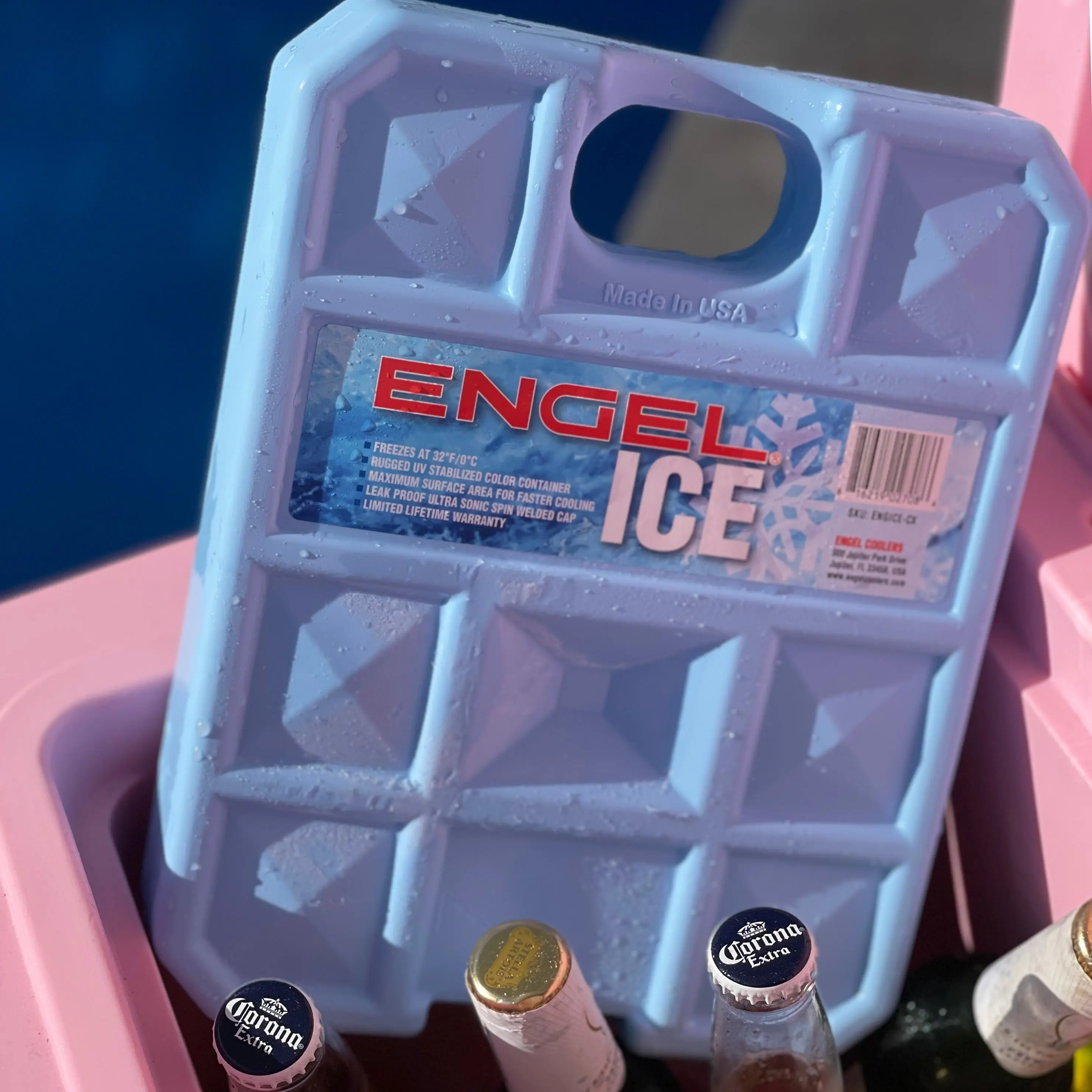 Work like a champ, last all day in a surf cart cooler, light weight and transportable.