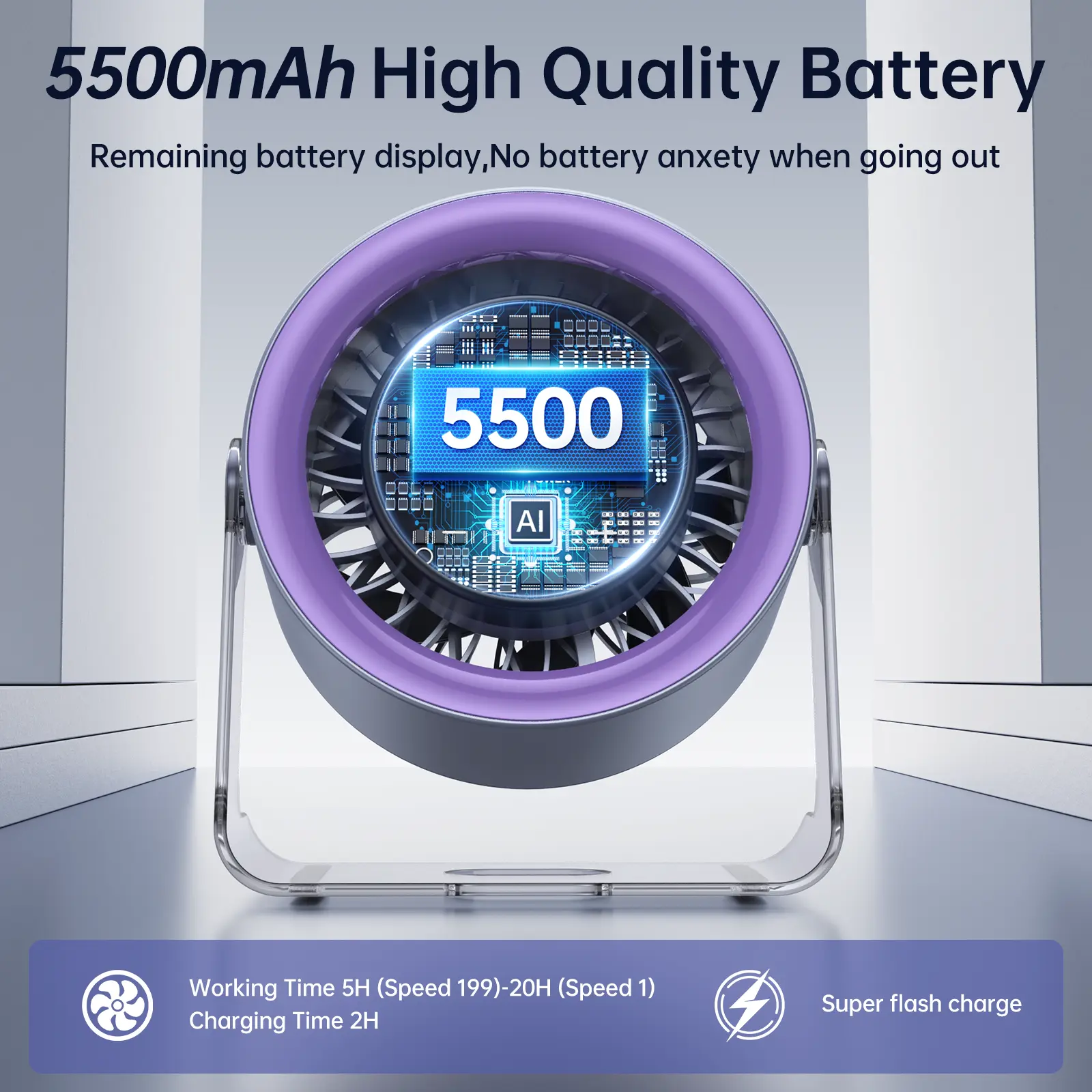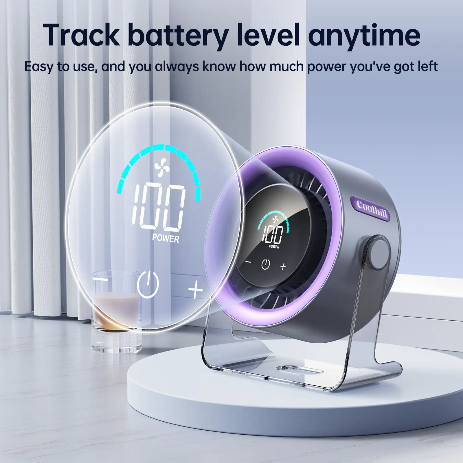 ·【LED Digital Display】 Our portable air circulation fan is equipped with a digital display that allows you to view the remaining power and current air speed in real time, even in the dark. In addition, this digital display small table fan built in 4000 mAh internal battery that can run independently for 4.5-18 hours on a full charge (needs about 3.5 hours).Supports Type C charging, you can replenish the fan whenever you have a USB port