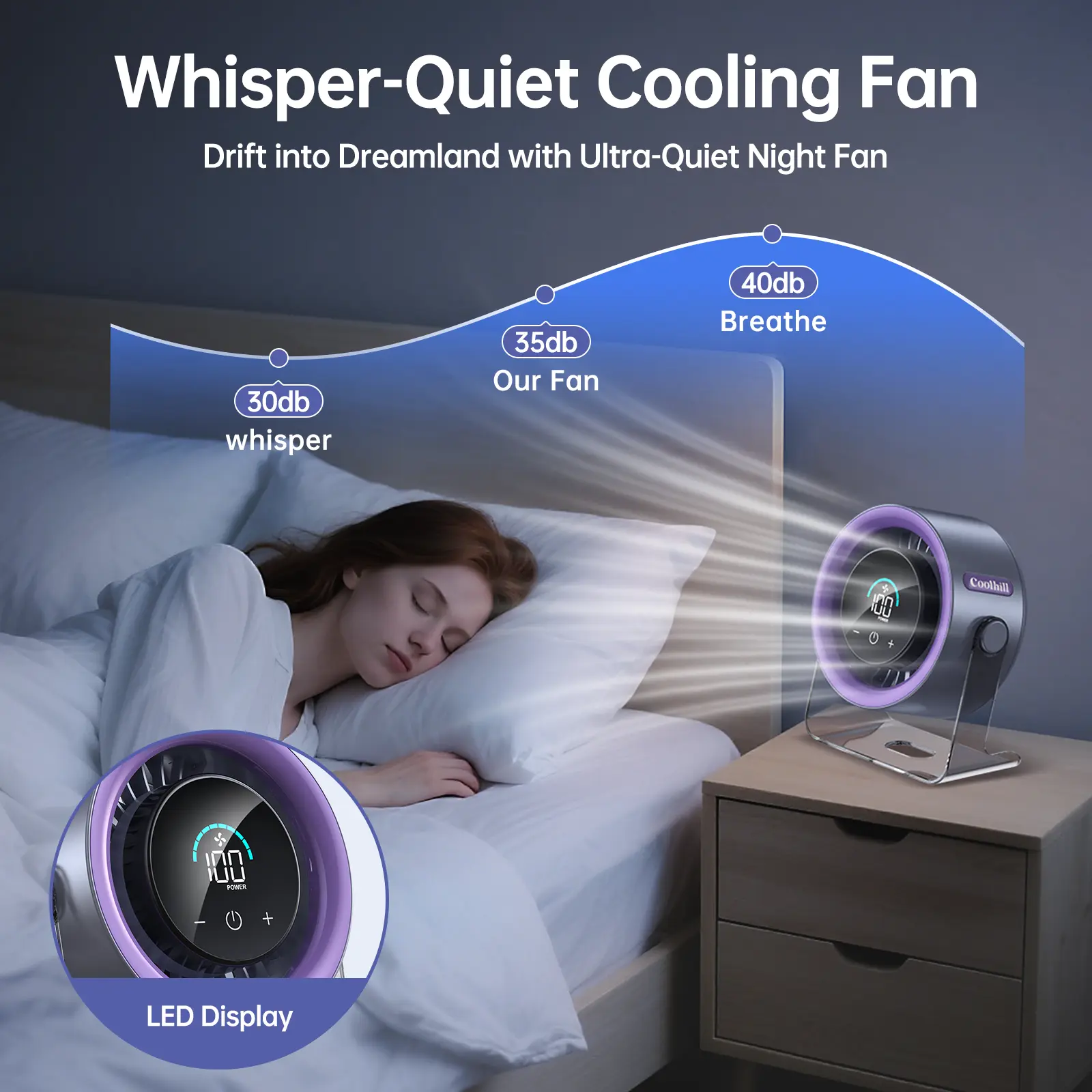 ·【Ultra Quiet Personal Fan】 Brushless motor technology noise reduction makes this small portable fan less than 30 dbs, even when turning to high air speed the noise is very low, bringing you a quiet environment and perfect sleep, perfect choice as a bedroom fan, office fan, desk fan or dormitory fan