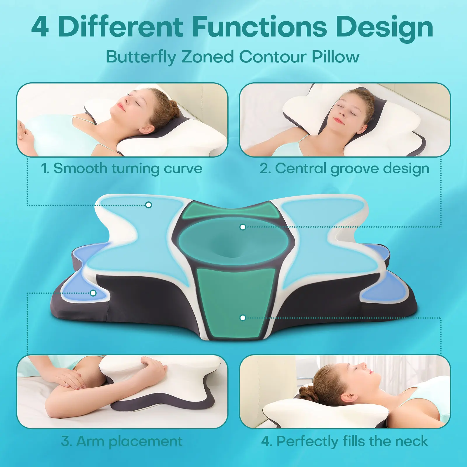 Double-Sided Zoned Contour Neck Pillow - Dual-Height Supportive Memory Foam - Cool-Breathable Pillowcase, Enlarged Armrest Section - Center Groove Design, Ultra-Soft for Side, Stomach & Back Sleepers #TOP PICKS