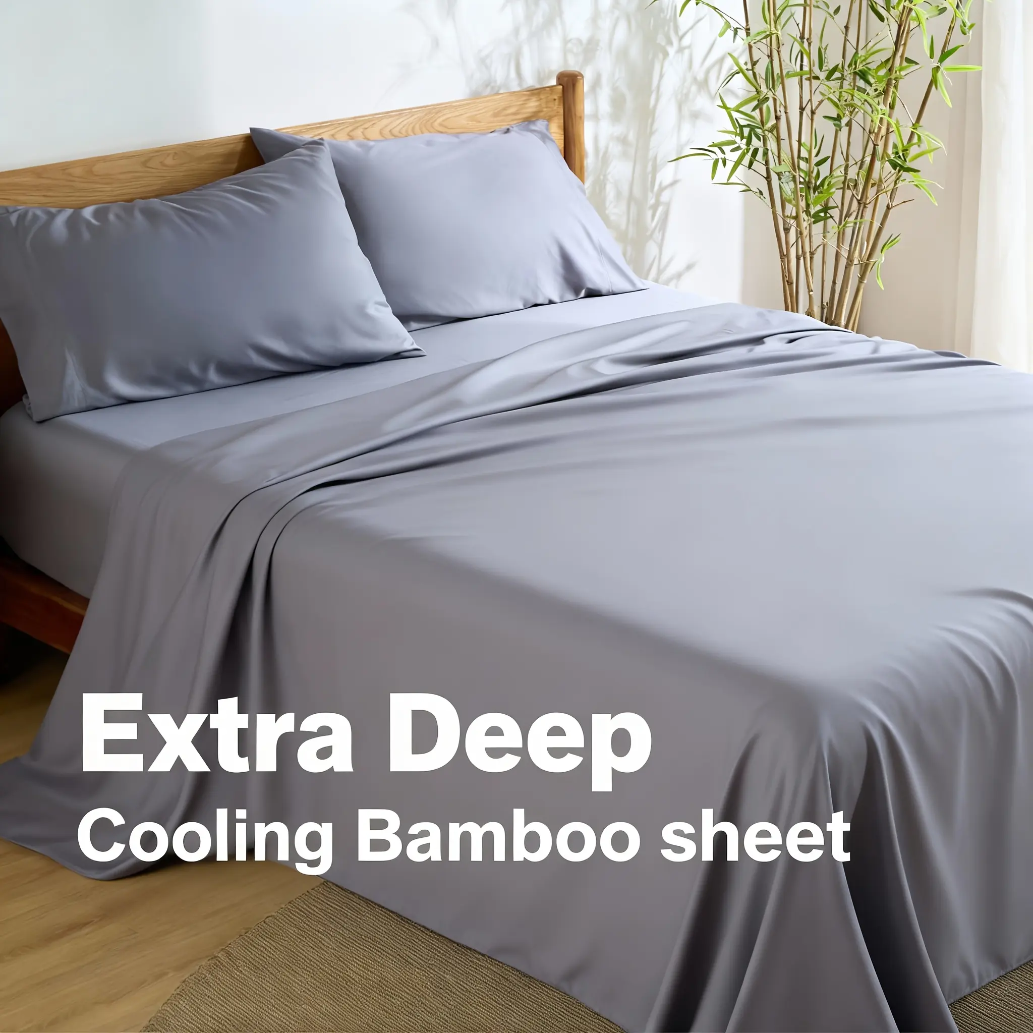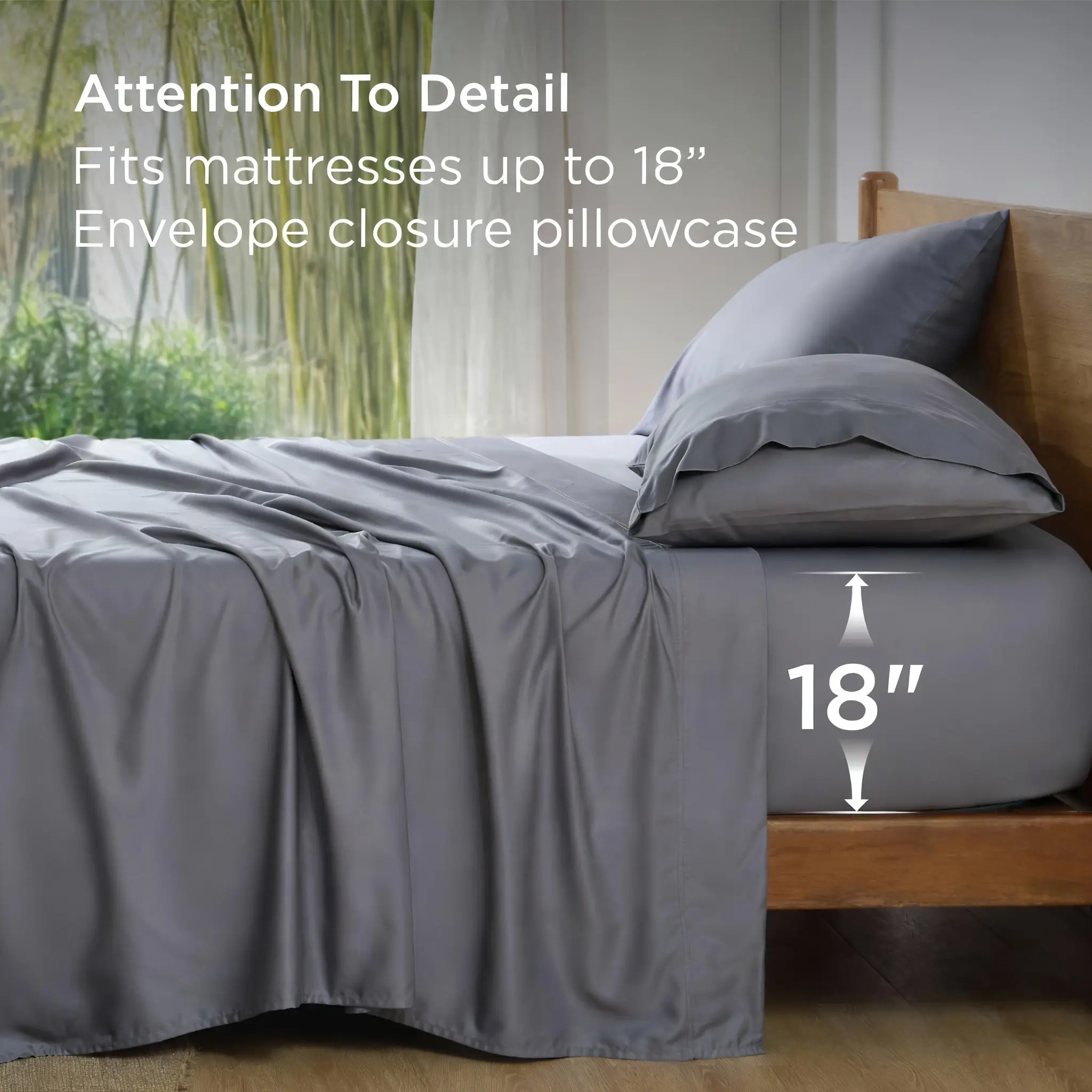 Featuring extra-strong elasticized edges, it grips mattresses up to 18" deep. It stays put, no matter how much you toss and turn. Sleep soundly with this secure fit. 4-Piece Luxury Bundle: 1 Fitted Sheet, 1 Flat Sheet, 2 Cooling Pillowcases. 🛏️