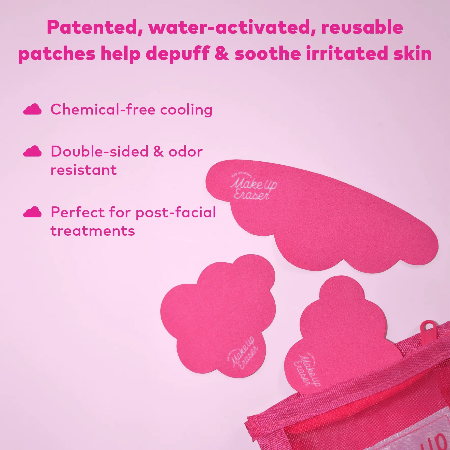 Cool & erase tired, facial puffiness with JUST WATER. Our patented, water-activated, reusable patches keep cool up to 30˚F (-1˚C) below average body temperature to de-puff & reduce irritation. Designed to lock in moisture. Perfect for layering over your favorite serums to help boost absorption & support deeper skin hydration.