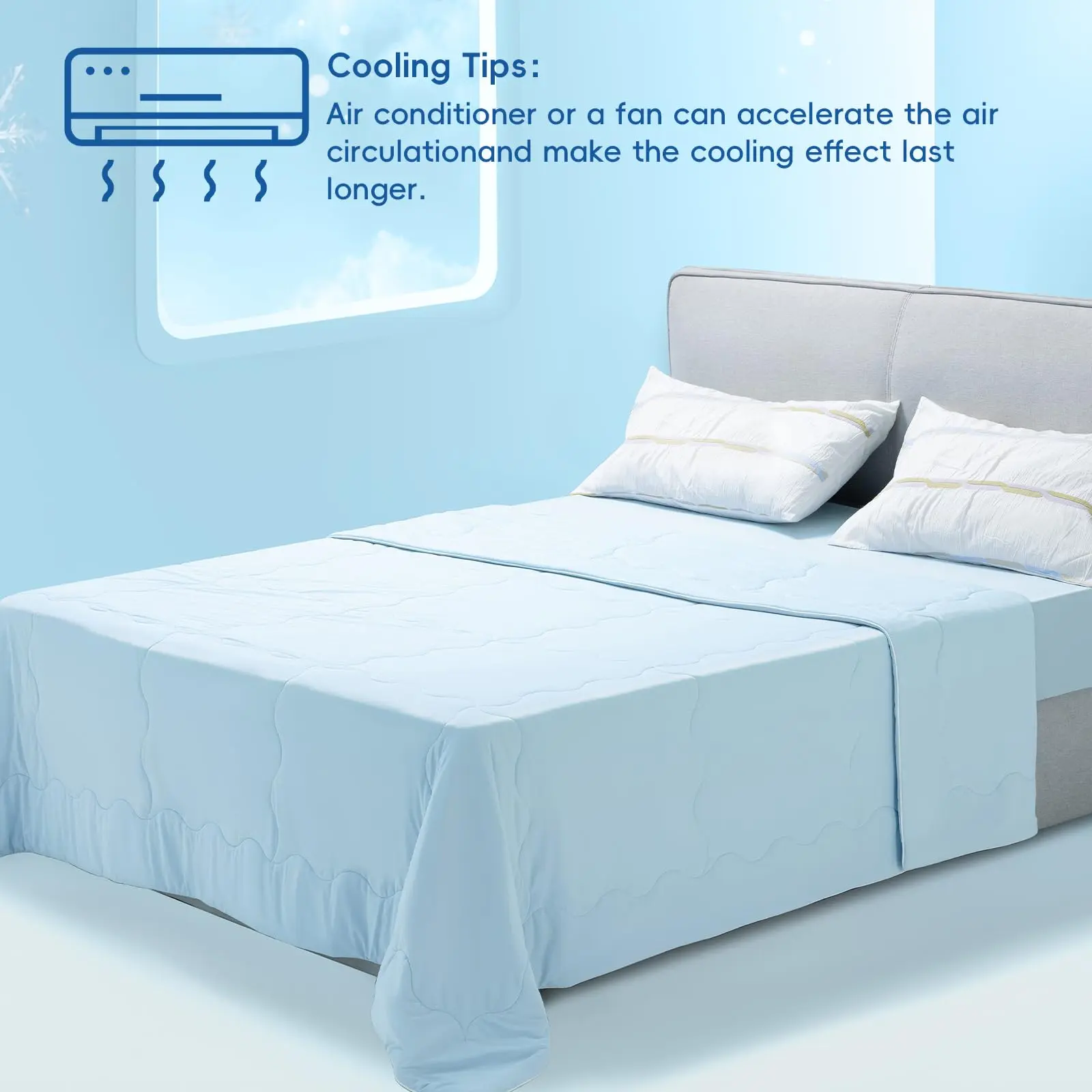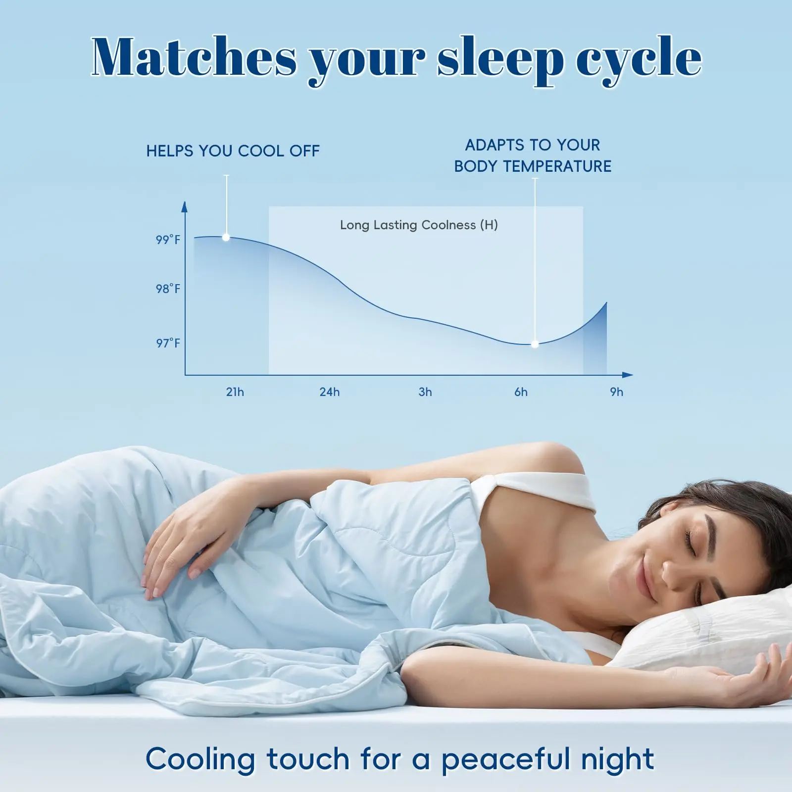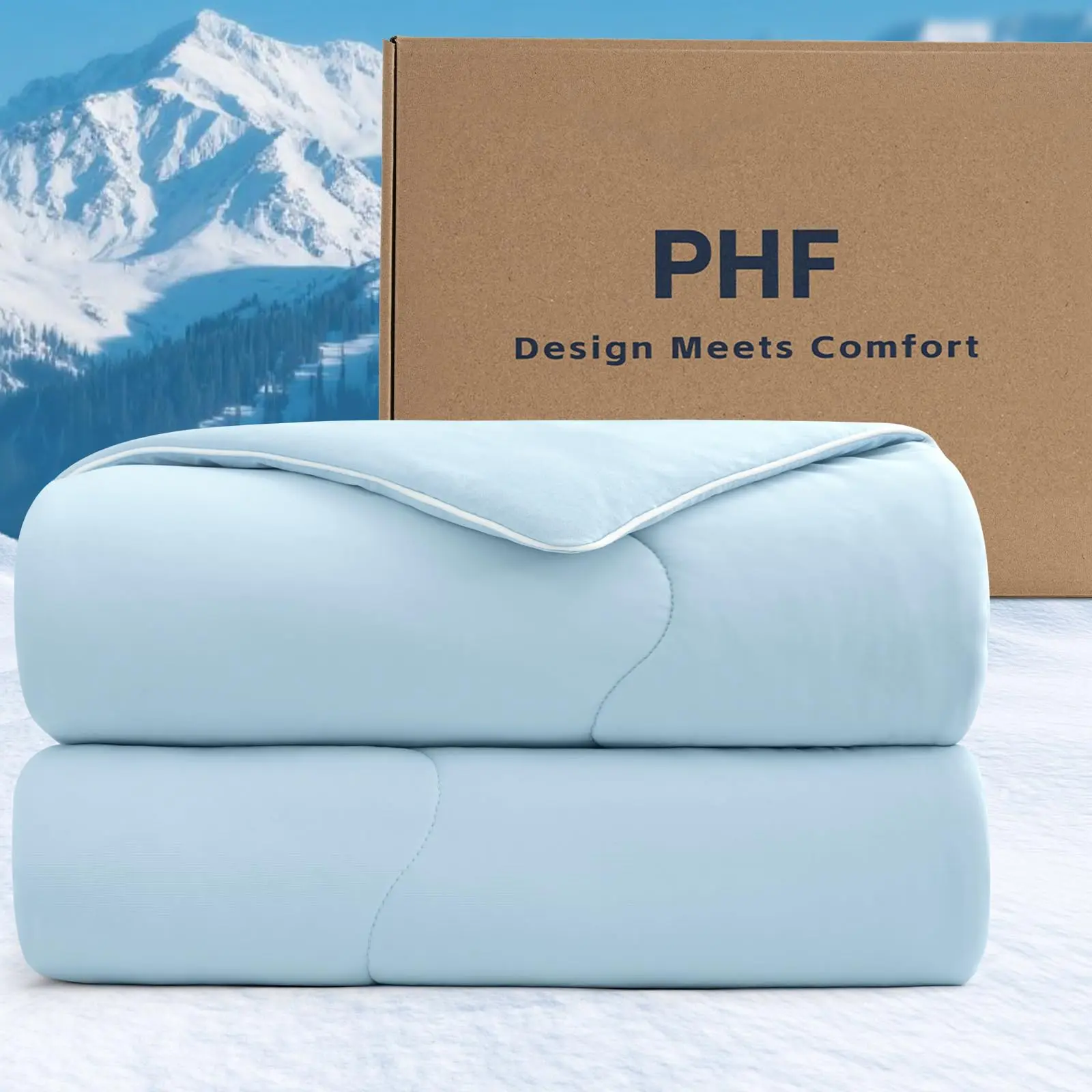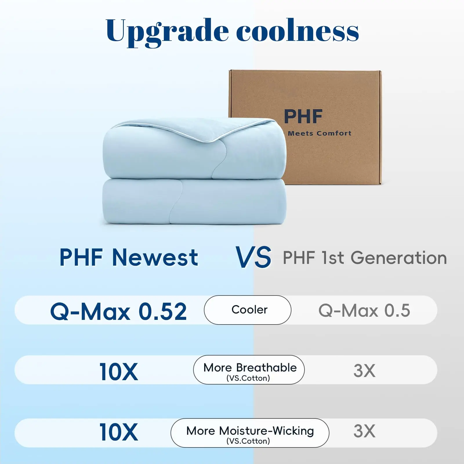 PHF cooling comforter is perfect for hot sleepers. It uses advanced cooling technology with Q-max>0.52. It absorbs heat, lowering your skin's temperature by 5°F. The cooling effect lasts continuously, creating a cool sleeping environment. Stay cool all night with this innovative comforter.