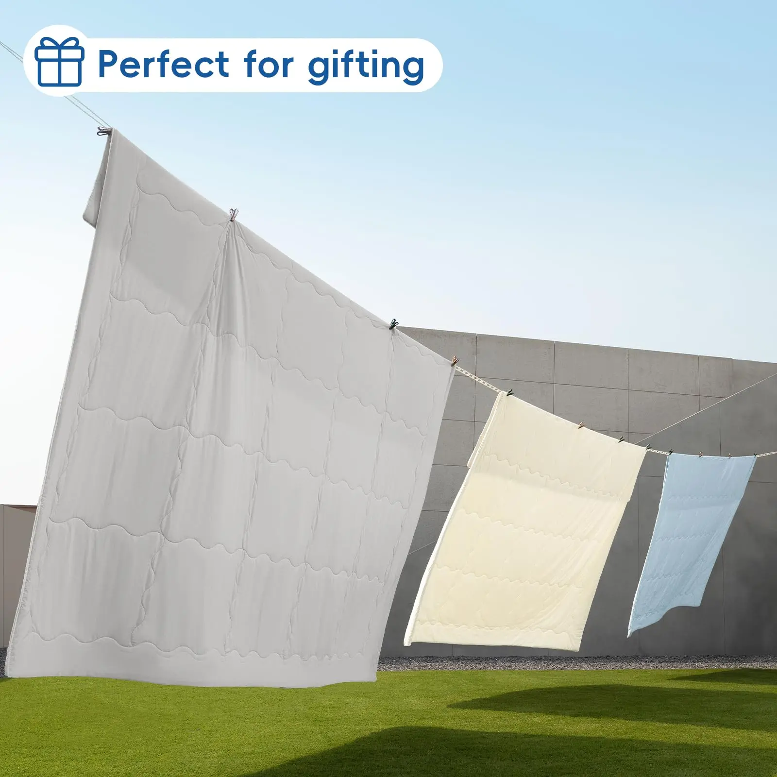 PHF cooling comforter is the ideal present for any occasion. Packed in a stylish kraft paper box, it gives an impression of thoughtfulness. It comes in 3 sizes - T(66"x90"), Q(90"x90"), and K(108"x90"), with 5 vibrant colors. This variety ensures an option for every individual's preference and need.