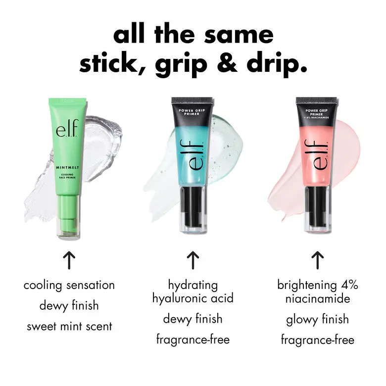You asked, we listened! Get all the makeup grip you e.l.f.ing crave with this limited-edition gel primer that delivers a cooling sensation and features a yummy scent inspired by mint chocolate chip ice cream. The formula glides on silky smooth and leaves your skin looking dewy and feeling minty fresh.