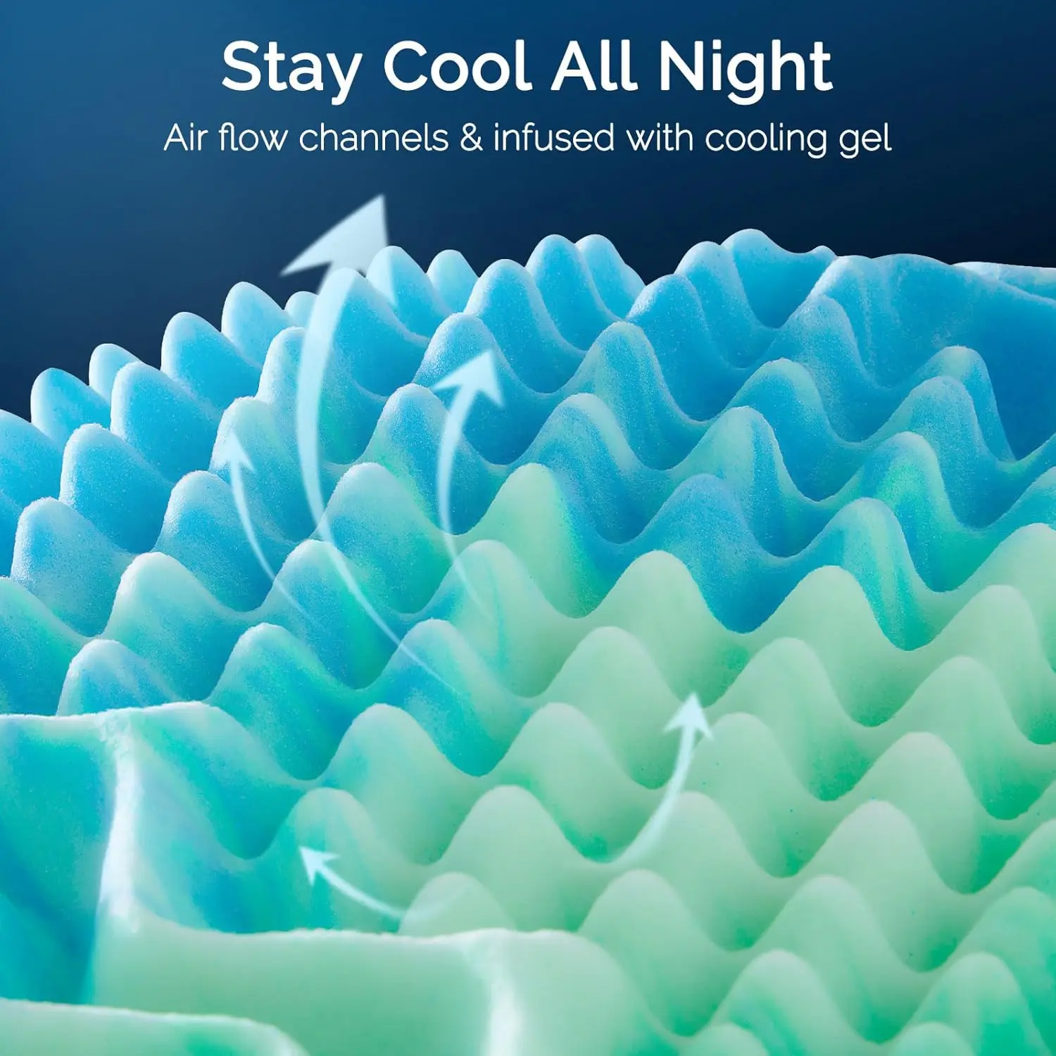 Advanced Cooling Gel Technology: Stay cool all night with our cooling gel mattress topper. Infused with cooling gel and designed with airflow channels, this topper enhances breathability and heat dissipation. for hot sleepers, this cooling bed topper helps maintain a comfortable sleep temperature, preventing night sweats and ensuring a refreshing sleep experience