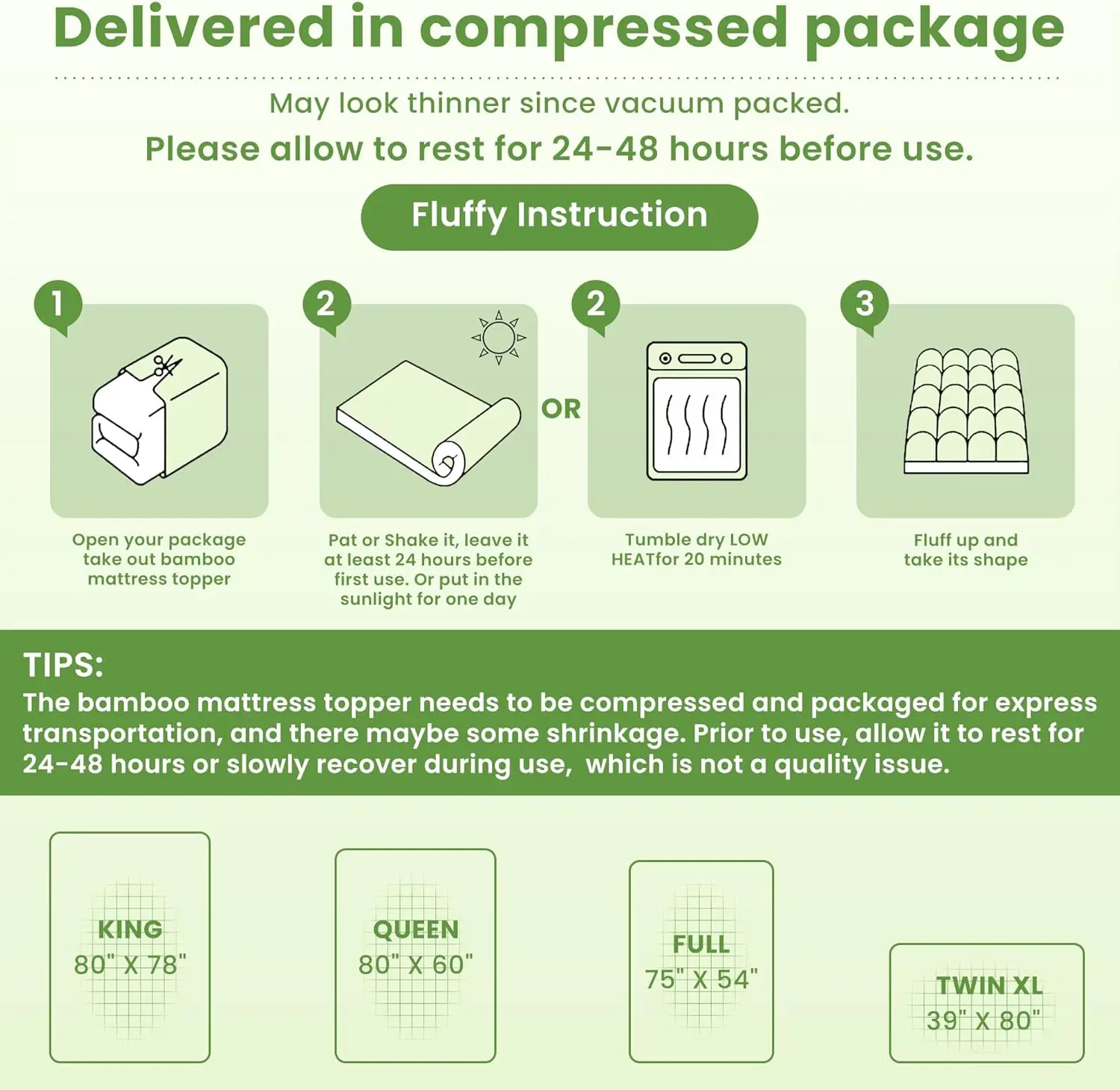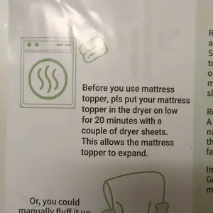 Measurements listed didnât make sense so I was really confused if I got the correct topper that I ordered (3in), but seller was helpful. Came vacuum sealed and I used my dryer to fluff it and then let it lay flat for a few hours. Itâs comfy and I noticed my hip pain after sleeping on it is better.