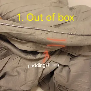 2. The filling is flat. I followed instructions given by the Seller in the comments. I placed in dryer with fabric sheets for 10 minutes (then 10 more minutes). No change; still flat.