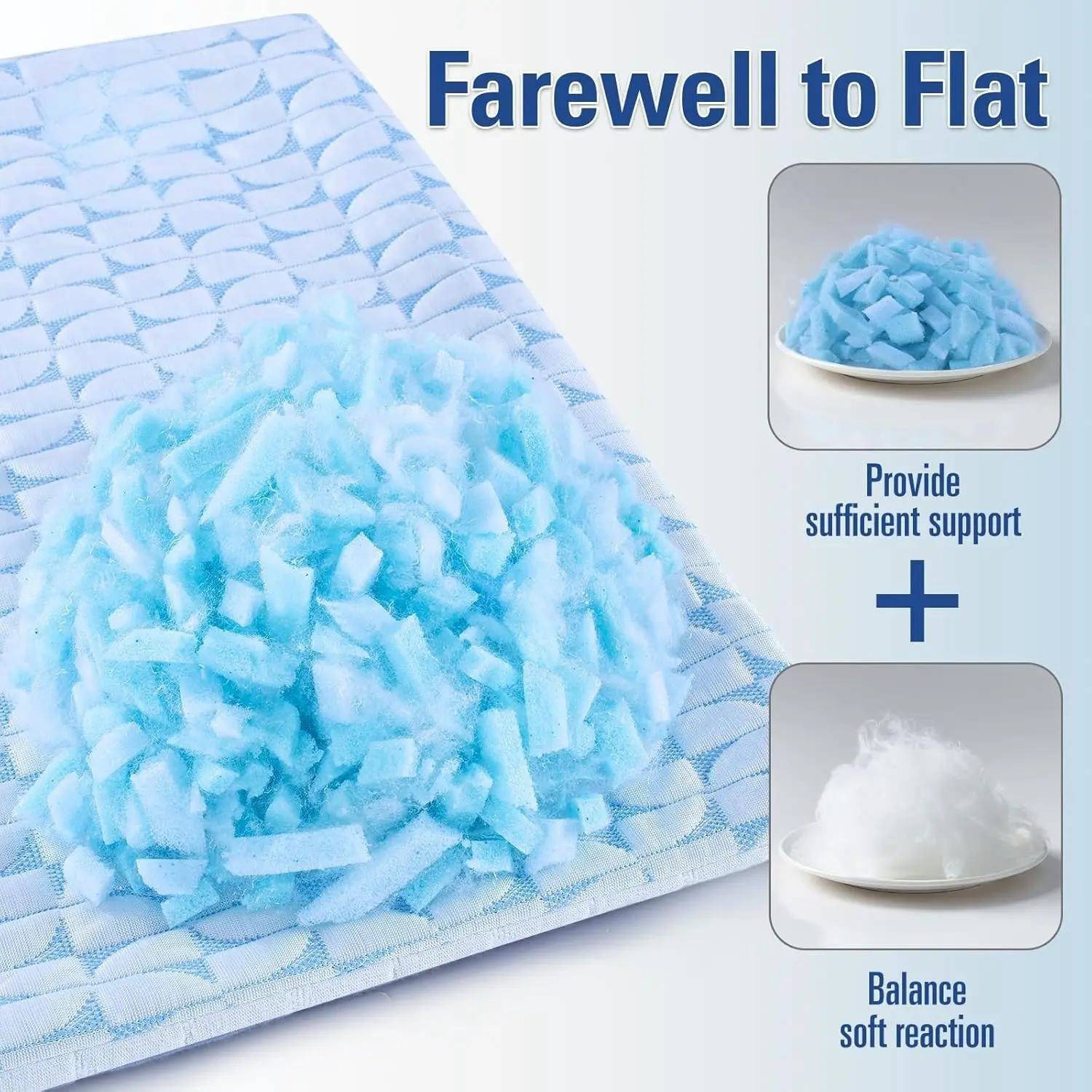 We adjusted many times to reach a golden ratio of high-density chopped memory foam and down alternative.