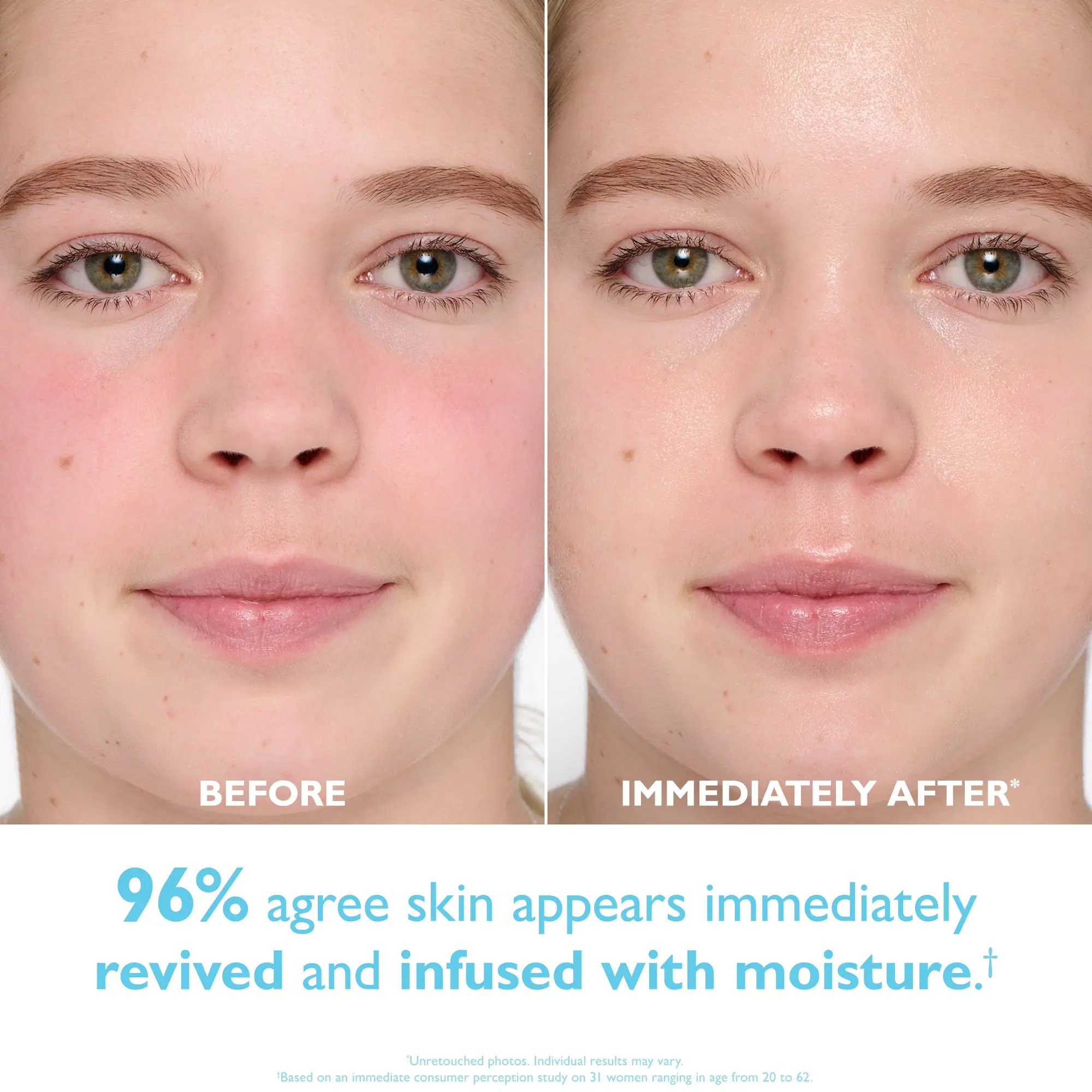 - 96% agree skin appears revived and infused with moisture
