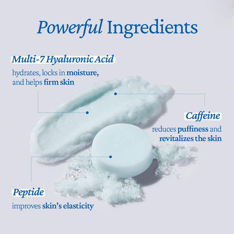| Ingredients | Water, Alcohol Denat., Stearyl Heptanoate, 1,2-Hexanediol, Dipropylene Glycol, Trehalose, Dimethicone, Eucalyptus Globulus Leaf Extract*, Mentha Rotundifolia Leaf Extract*, Rosa Canina Fruit Extract*, Melissa Officinalis Flower/Leaf/Stem Water*, Rosmarinus Officinalis (Rosemary) Leaf Water*, Thymus Vulgaris (Thyme) Leaf Extract*, Hydrolyzed Hyaluronic Acid, Hyaluronic Acid, Hydrolyzed Sodium Hyaluronate, Sodium Hyaluronate, Hydroxypropyltrimonium Hyaluronate, Sodium Hyaluronate Crosspolymer, Sodium Acetylated Hyaluronate, Caffeine, Panthenol, Polyglyceryl-10 Stearate, C14-22 Alcohols, Polyglyceryl-10 Oleate, Carbomer, Sodium Polyacrylate Starch, C12-20 Alkyl Glucoside, Malachite Extract, Potassium Hydroxide, Disodium EDTA, Niacinamide, Betaine, Sodium Gluconate, Pentylene Glycol, Ethylhexylglycerin, Caprylyl Glycol, Acetyl Hexapeptide-8, Rosmarinus Officinalis (Rosemary) Leaf Oil+, Citrus Aurantifolia (Lime) Oil+, Pelargonium Graveolens Flower Oil+, Citrus Aurantium Dulcis (Orange) Peel Oil+, Limonene, Citronellol, Geraniol, Citral, Linalool. |