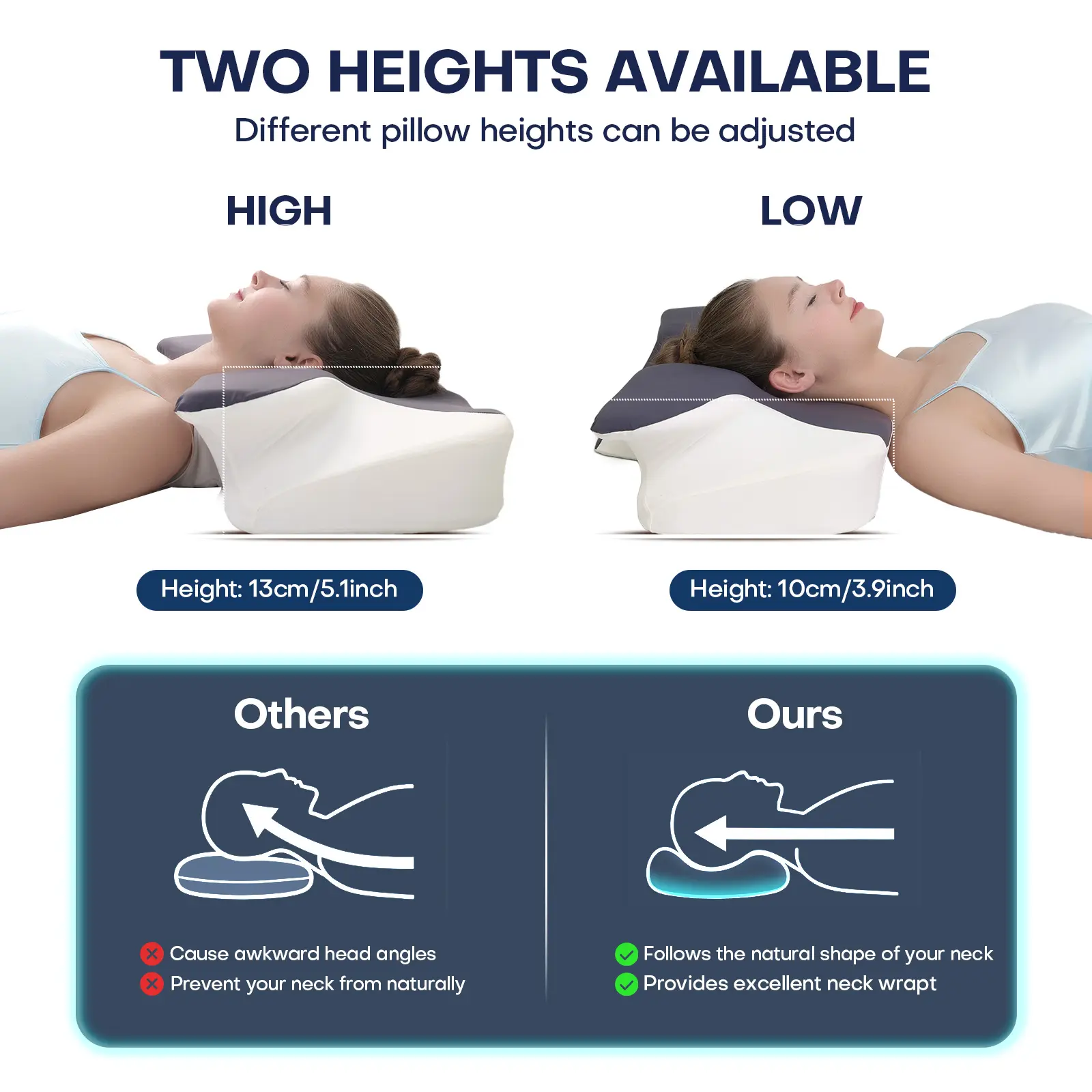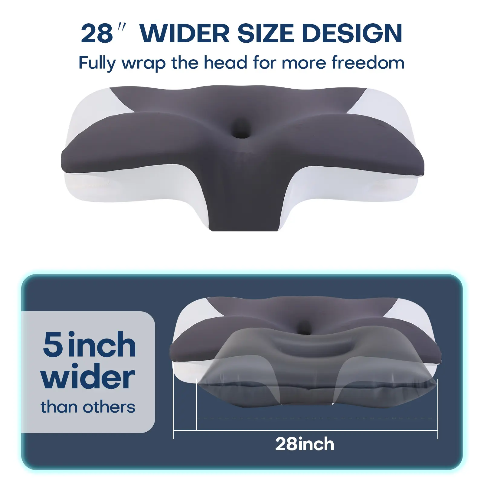 Extra-wide, oversized neck pillow High-quality supportive memory foam pillow Two heights available Washable, breathable pillowcase Enlarged armrest area for Side Sleep Stomach Sleeping and Back Sleepers