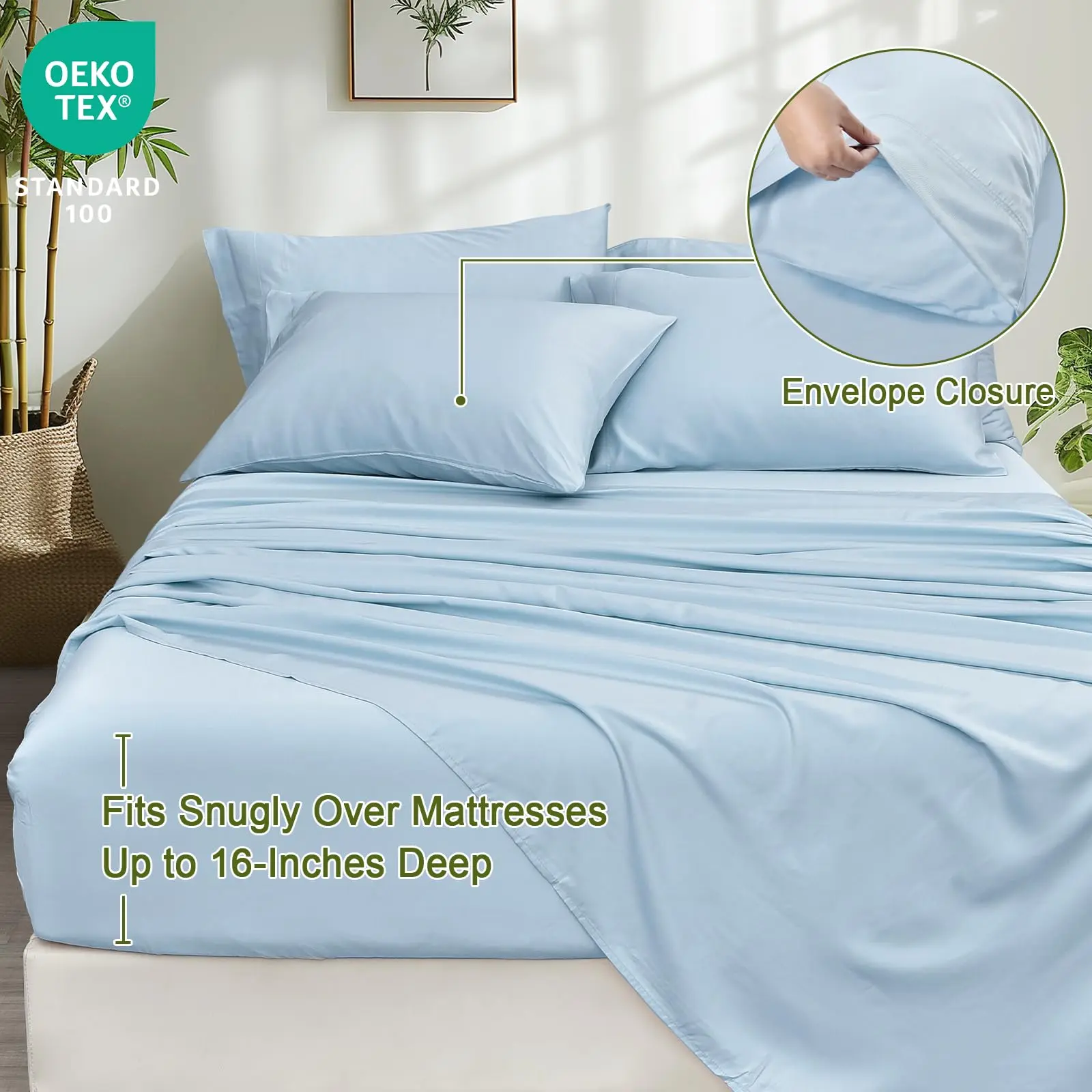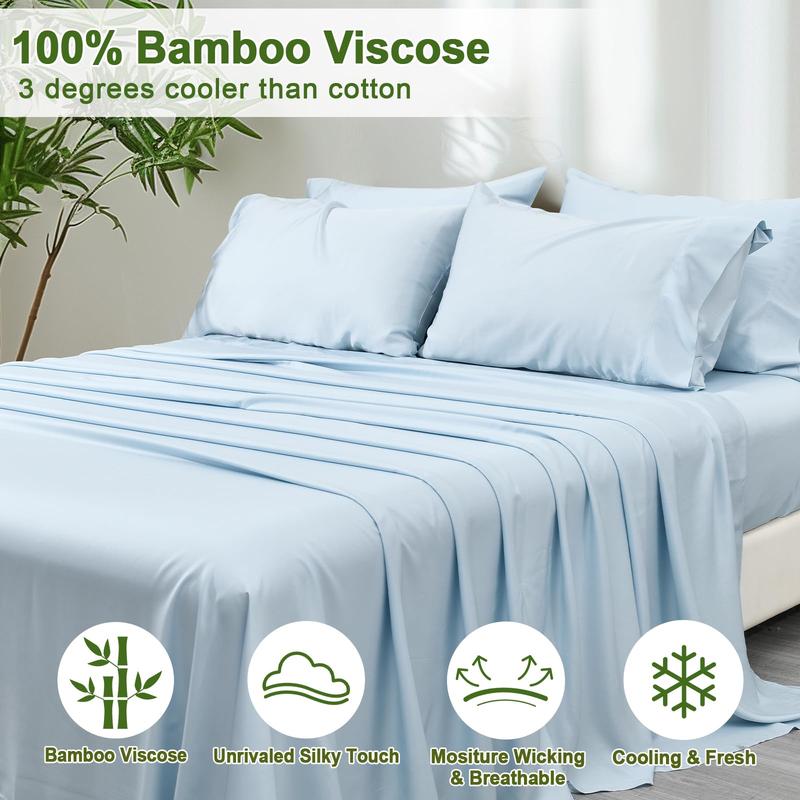 Ultra Cooling & Breathable Comfort: Our cooling sheets are made of 100% rayon derived from bamboo, and have natural feeling and temperature-regulating properties that make it perfect for hot sleepers. It can absorb most of the heat in summer, keeping you cool and dry all night. The moisture-wicking feature of our fabric also eliminates the discomfort of night sweats, providing a peaceful and refreshing sleep.