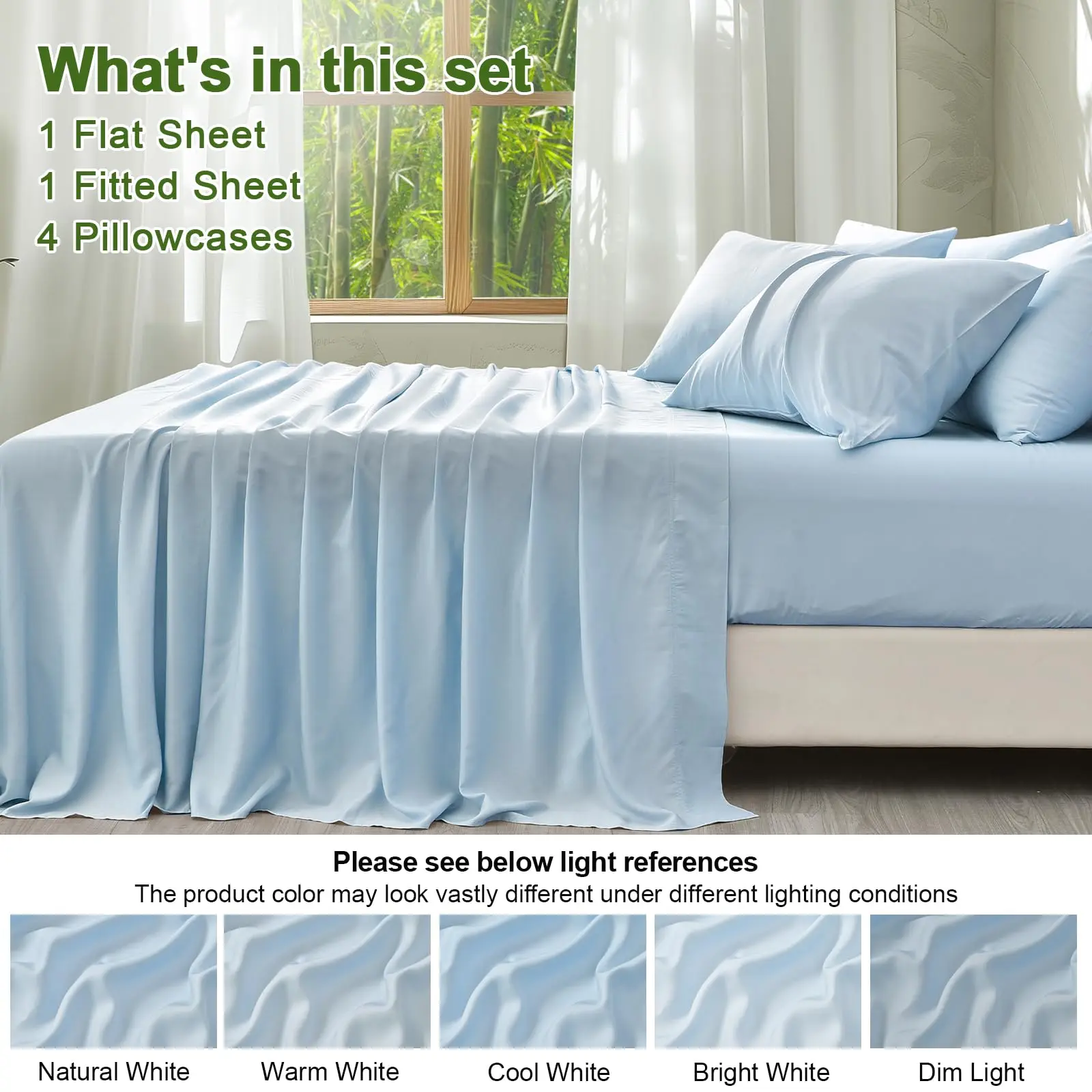 Easy Care: Machine wash separately in cold water, a gentle cycle, Do not bleach. No pilling, no shrink, no fade, labor tests show that the bamboo rayon sheets set keeps its shape and stays brand new after 100+ wash cycles.