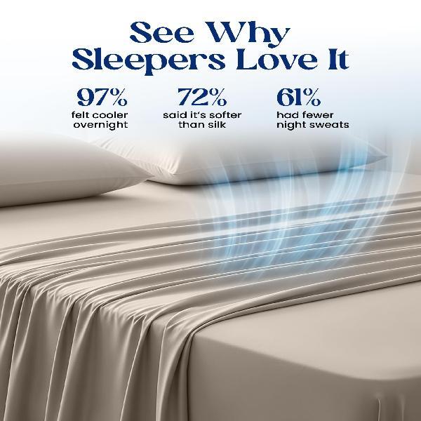 VERIFIED ALL-NIGHT TEMPERATURE REGULATION: Our cooling sheets boast a Qmax score over 0.4, ensuring sustained cooling without fading. This guarantees deep, restorative sleep and an end to night sweats. Transform your night with comfort and peace.