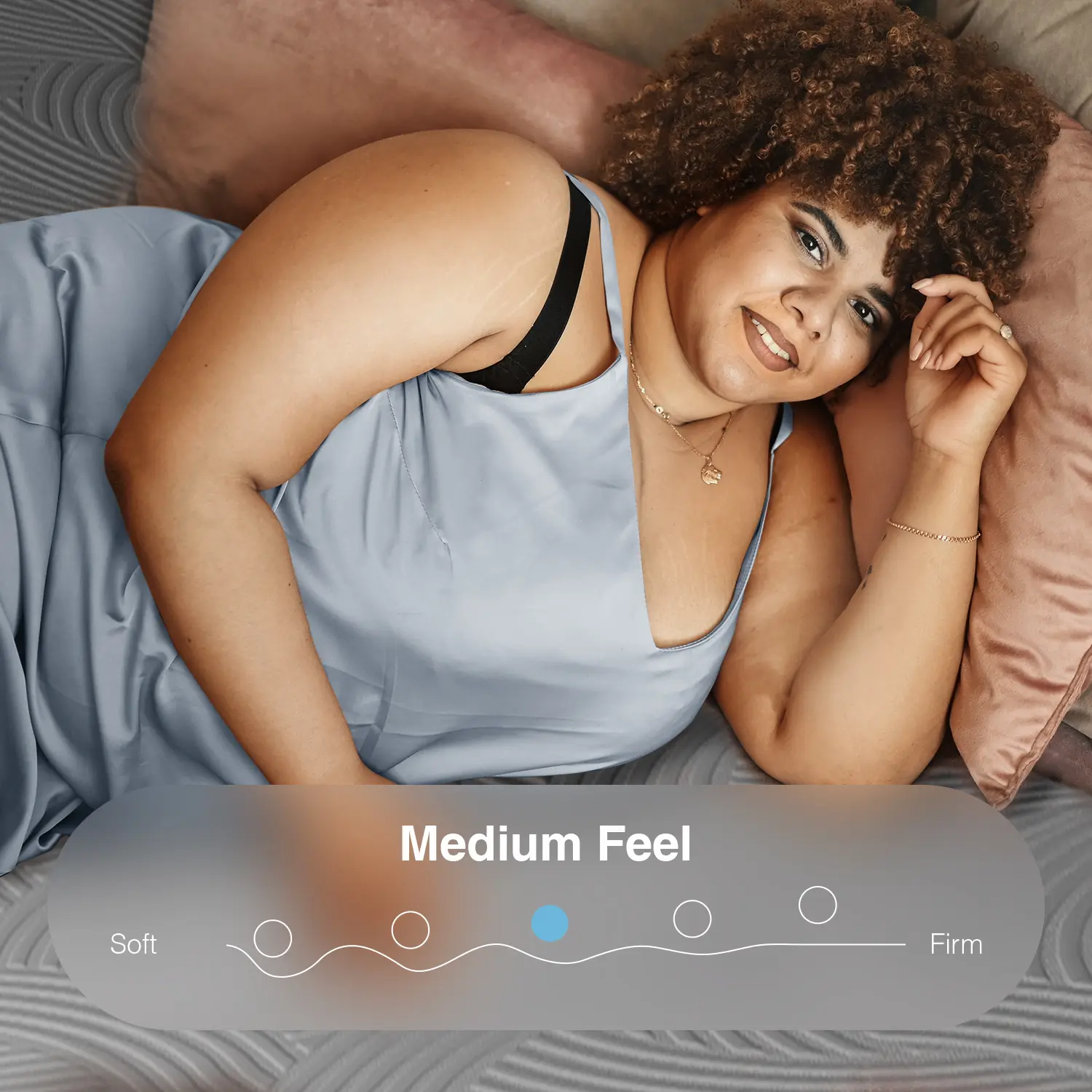5-Zone Ergo Support: High-density foam + reinforced coils target pressure points (head/shoulders/waist/hips/legs), minimizing motion transfer for heavier bodies.