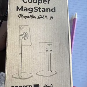 The Cooper MagStand is a height-adjustable iPhone holder designed for MagSafe-compatible iPhones (17 Pro Max, Pro, Plus, 16/15/14/13/12).