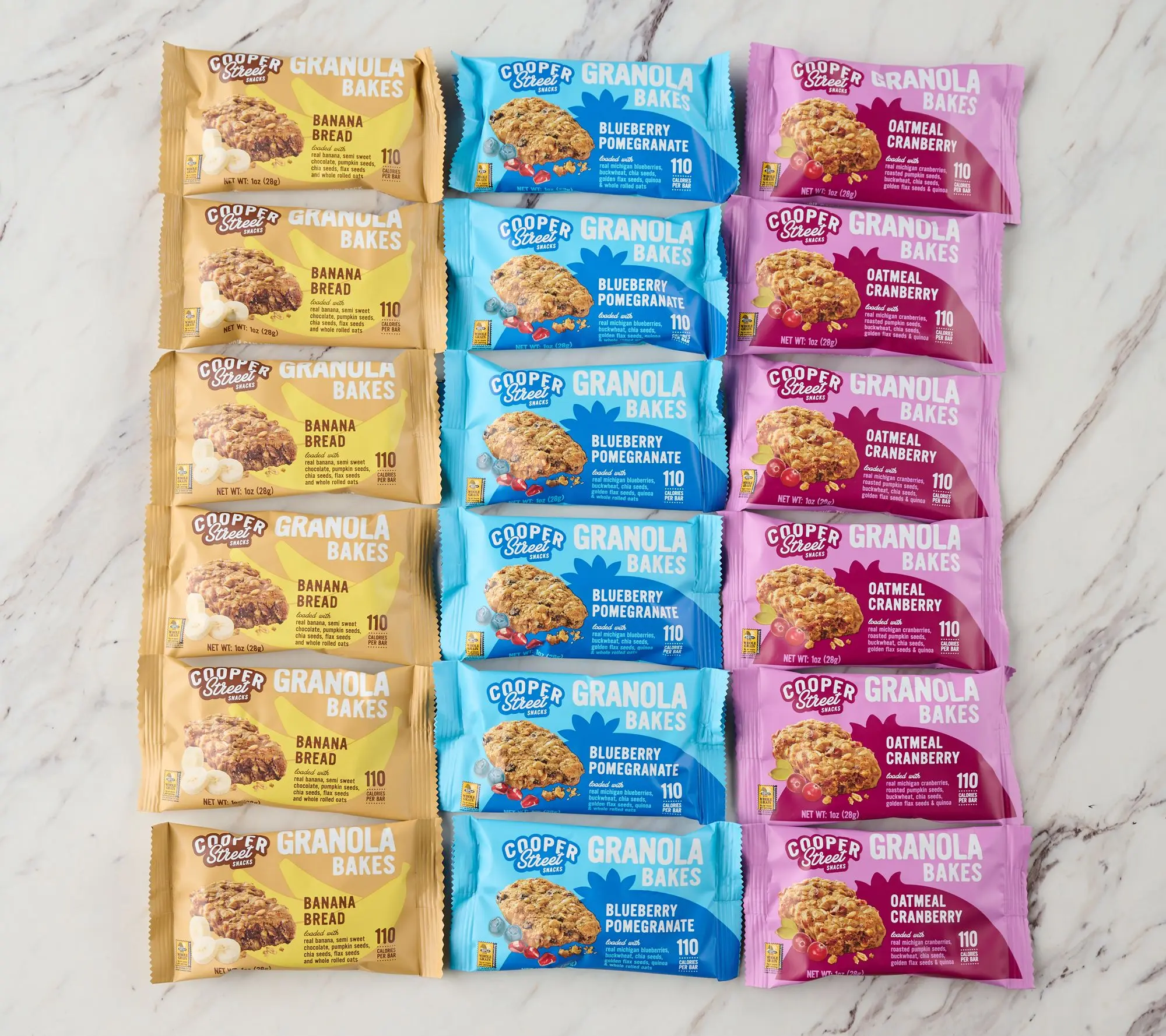 ·Combo: six each of Blueberry Pomegranate, Oatmeal Cranberry, and Banana Bread