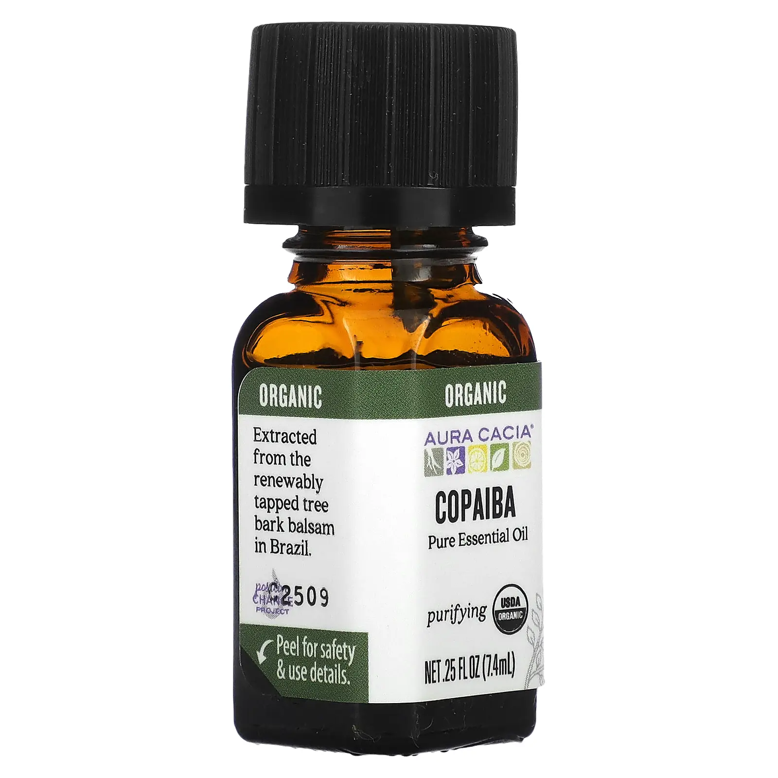 Aura Cacia Pure Essential Oil, Organic Copaiba, 0.25 fl oz (7.4 ml)