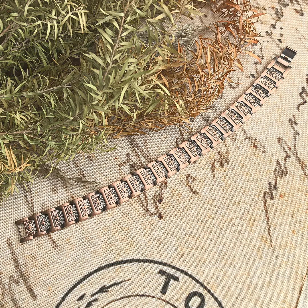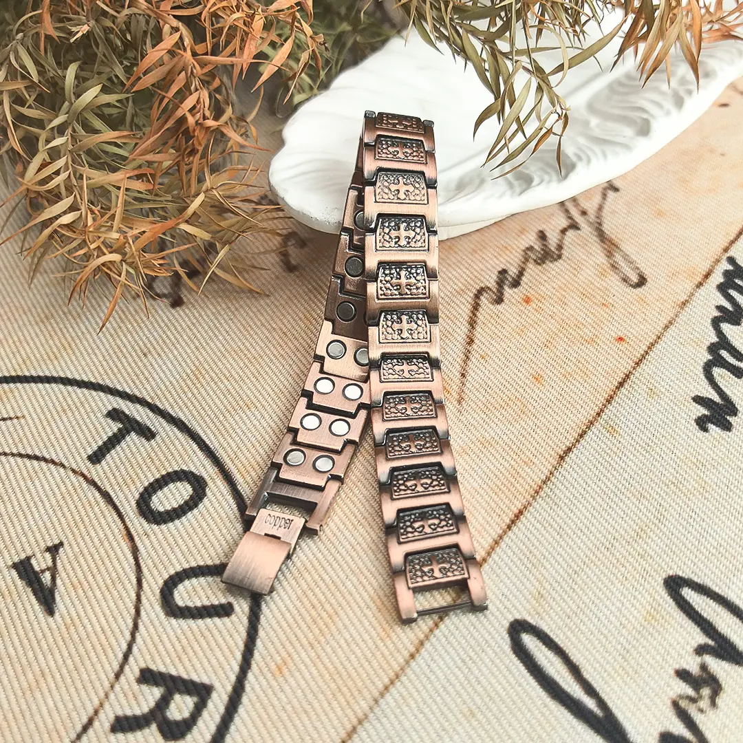 By far one of the best copper magnetic bracelets that I've got so far, it's got some weight to it. It's easy to remove, and comes with tools to change your linkages out. Really nice product I would recommend buying. Lots of magnets. Helps with my inflammation.
